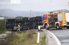 Aunque las primeras informaciones apuntaban a que el conductor había resultado ileso al salir por su propio pie de la cabina -motivo por el cual no ha sido necesaria la excarcelación por parte de la dotación de Bomberos de Salamanca desplazada-, la situación médica ha requerido finalmente traslado hospitalario.