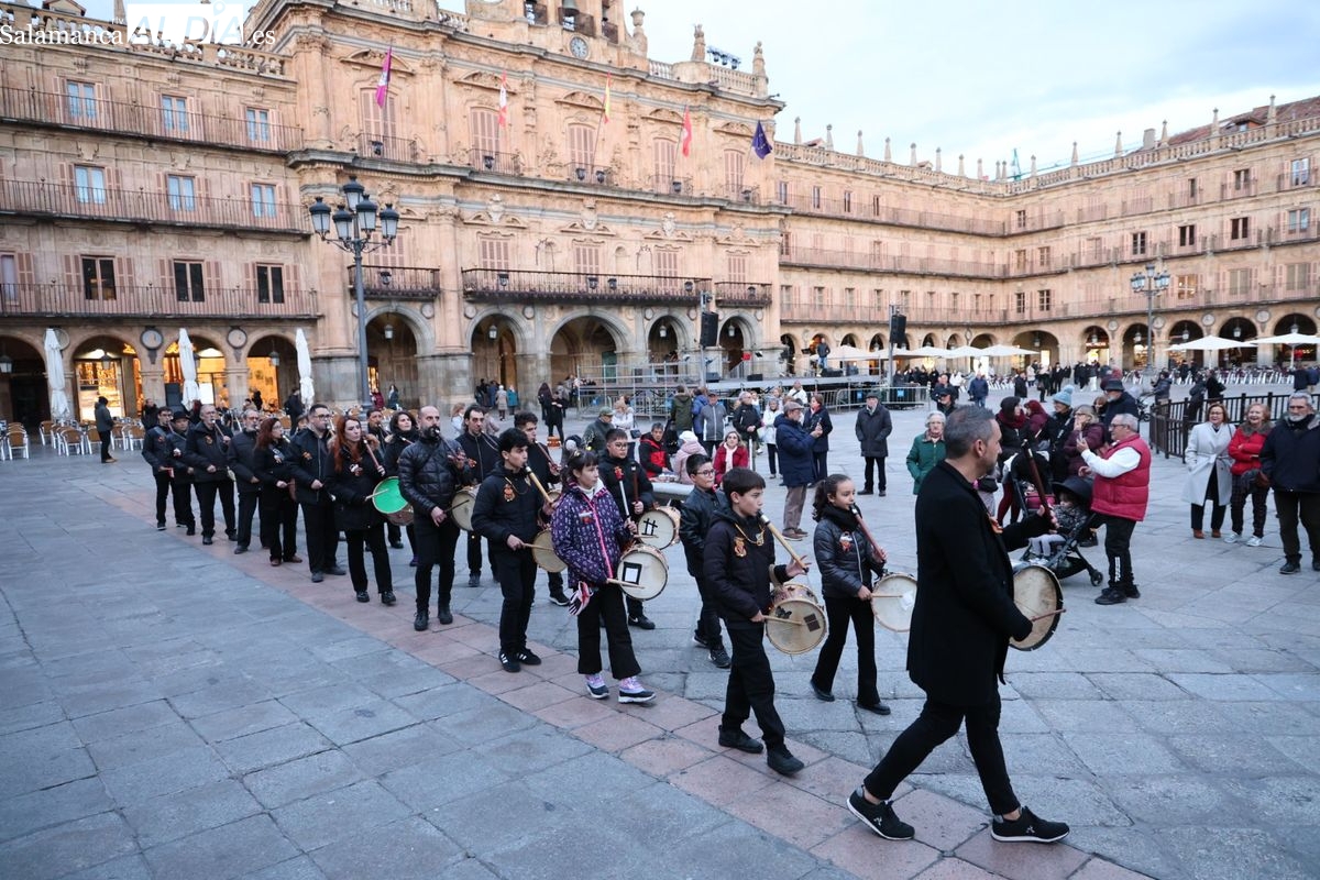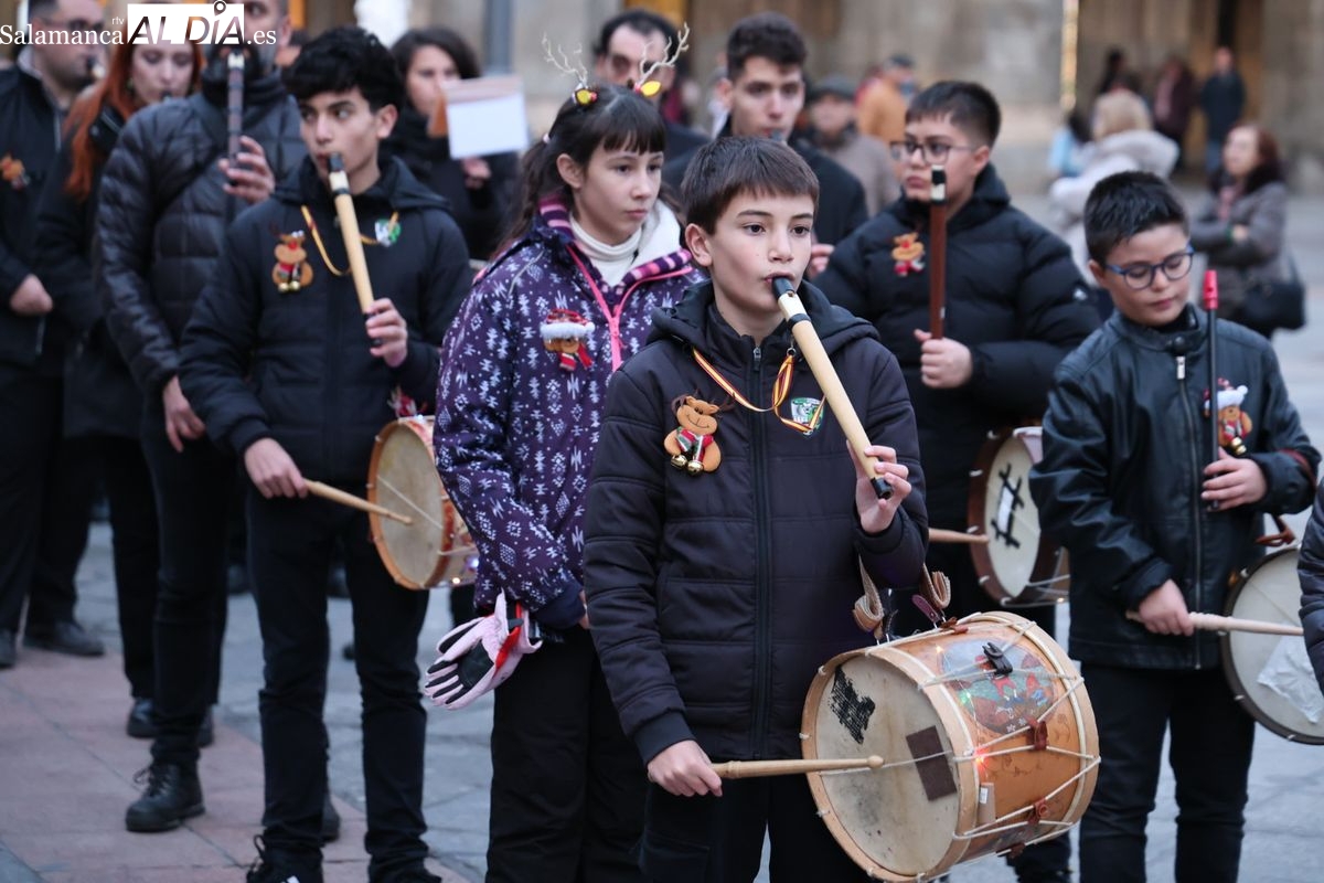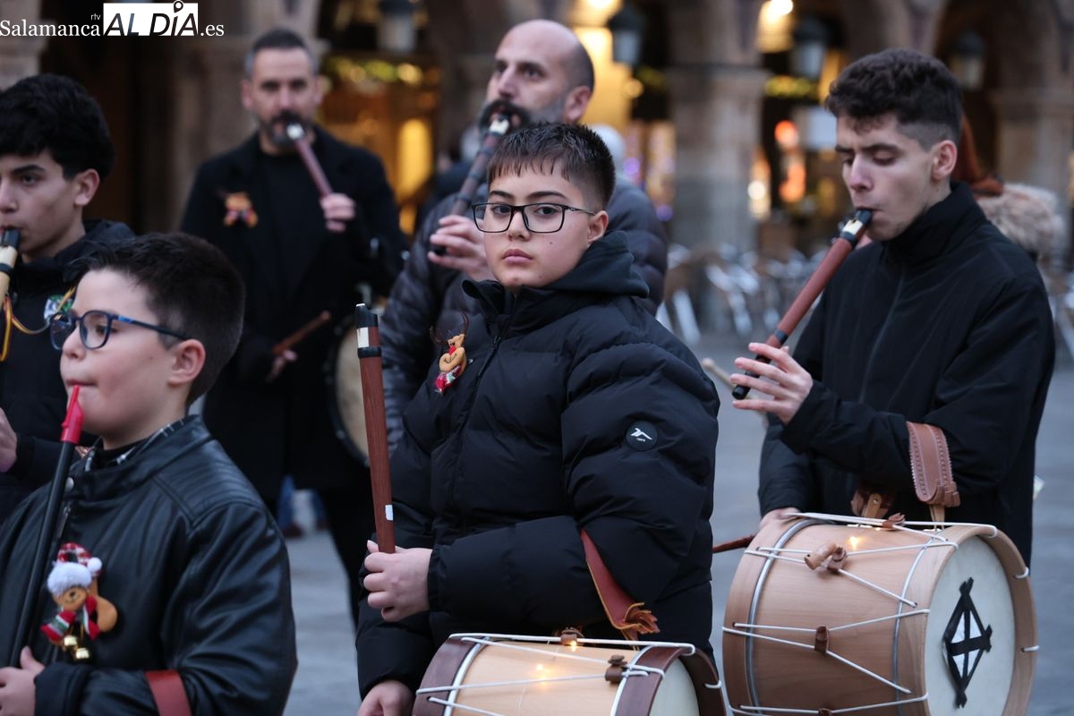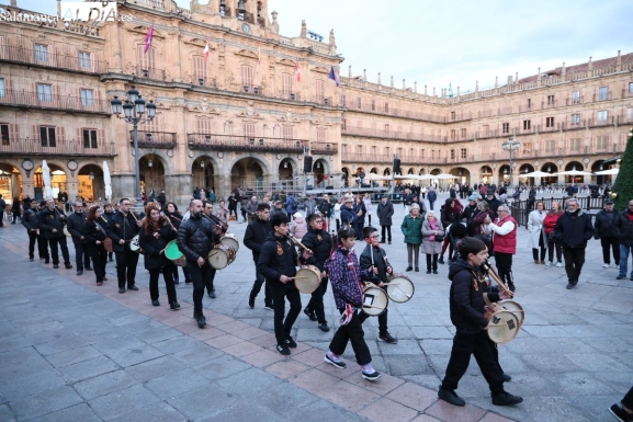 Más allá de la música, el evento ha destacado por su componente de recuperación etnográfica. 'El Pujo' ha recreado una antigua costumbre navideña en la que los mozos y mozas de los pueblos recorrían las calles durante estas fechas. Acompañados de instrumentos tradicionales como zambombas, gaitas, tamboriles y panderetas, la comitiva pedía el aguinaldo puerta por puerta, una estampa que hoy ha vuelto a cobrar vida en el centro de la capital del Tormes.
