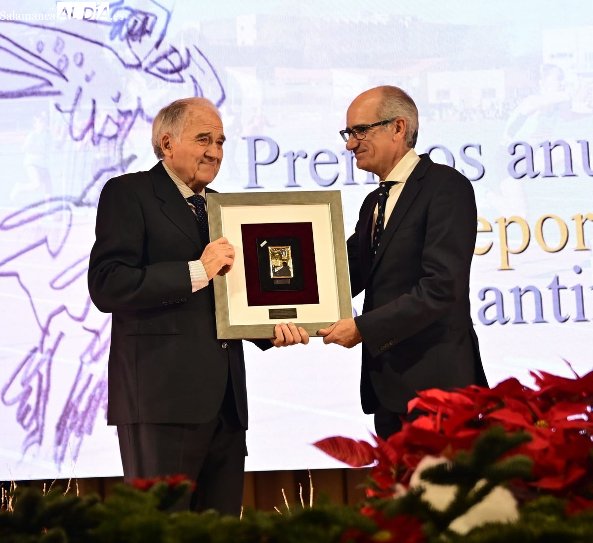 El acto ha incluido la entrega de placas institucionales a entidades y técnicos destacados. La Delegación Salmantina de Atletismo ha recibido la Placa Diputación de Salamanca por su labor de promoción. Los atletas escolares de escalada David Garrido y Daniela Vaquero han obtenido la Placa Junta de Castilla y León por sus resultados. El Club Deportivo Escuela Santiago Uno ha sido distinguido con la placa del Ayuntamiento de Salamanca.
