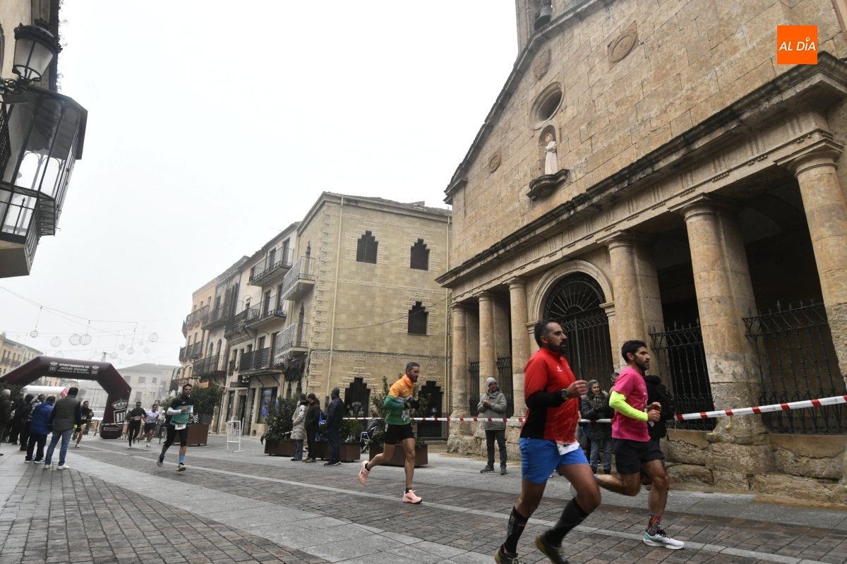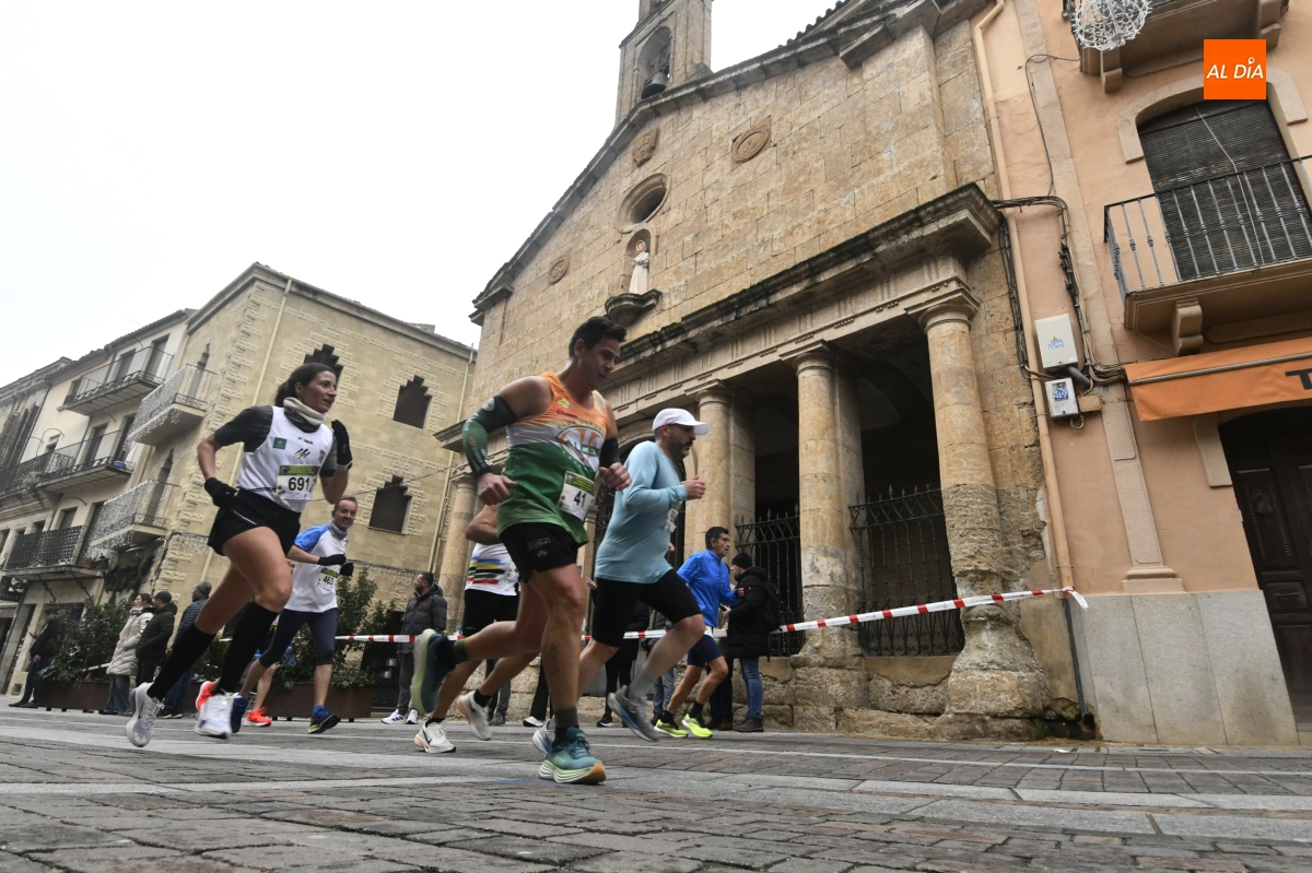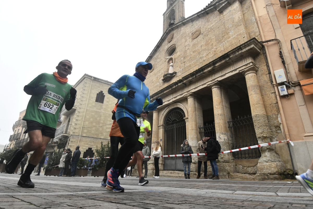 Ciudad Rodrigo ha vuelto a convertirse este domingo en el epicentro del atletismo popular salmantino. La tradicional 'Carrera del Turrón' ha tomado las calles del casco histórico mirobrigense en una jornada marcada por las bajas temperaturas y la niebla, condiciones que no han impedido que una multitud de corredores y público se dieran cita para disfrutar del evento.