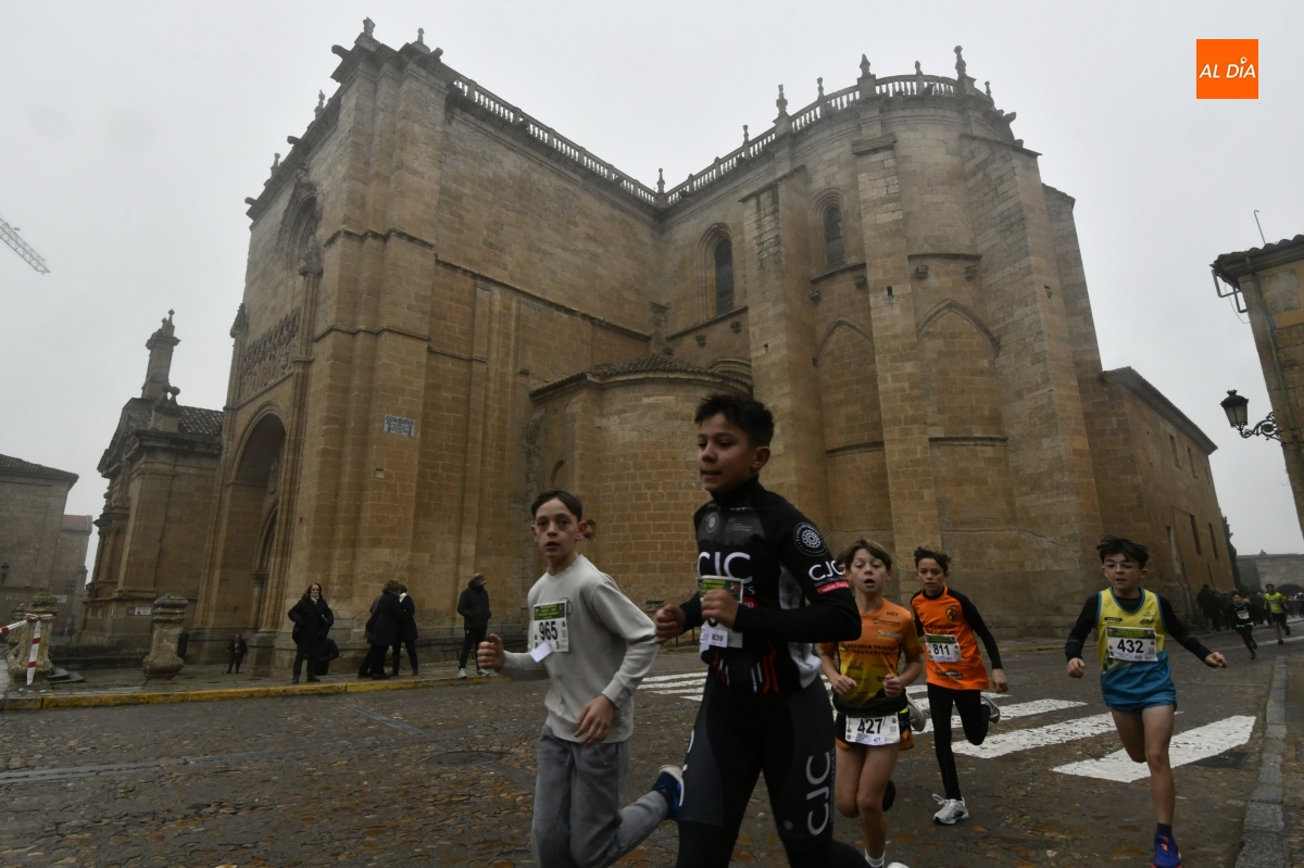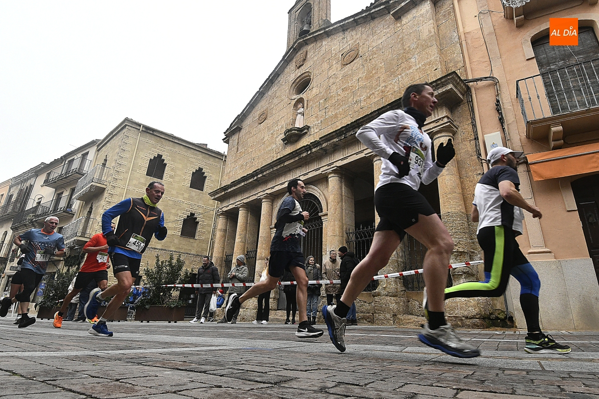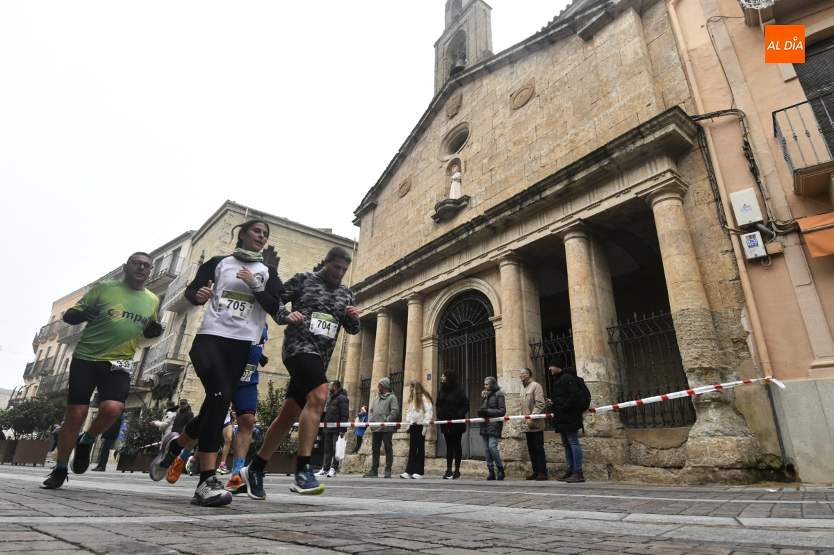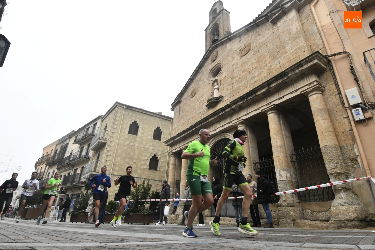 Ciudad Rodrigo ha vuelto a convertirse este domingo en el epicentro del atletismo popular salmantino. La tradicional 'Carrera del Turrón' ha tomado las calles del casco histórico mirobrigense en una jornada marcada por las bajas temperaturas y la niebla, condiciones que no han impedido que una multitud de corredores y público se dieran cita para disfrutar del evento.