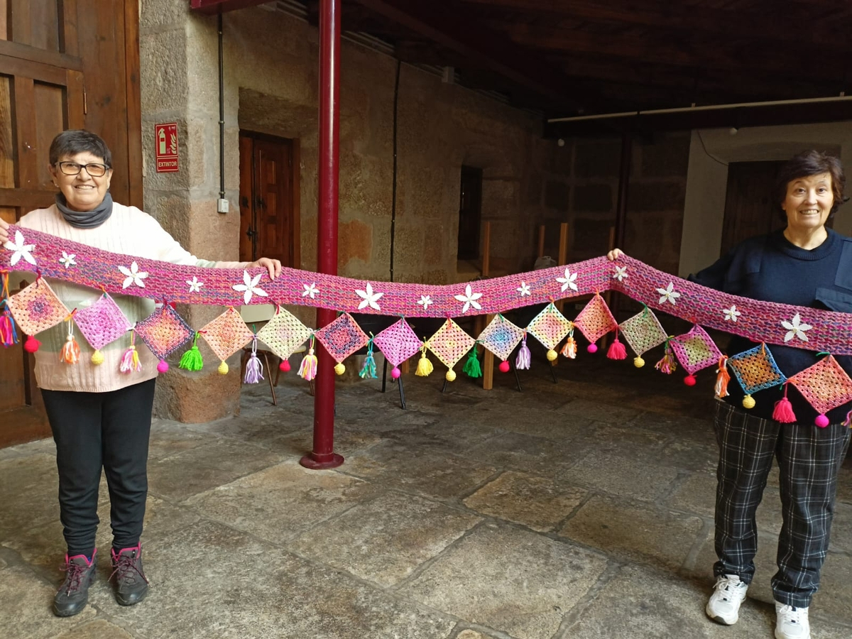 Durante los dos últimos meses, un grupo de 16 artesanas del crochet ha trabajado intensamente para transformar hilos y lanas en motivos festivos. El resultado de este esfuerzo colectivo son 21 guirnaldas navideñas y numerosos adornos que ya visten los árboles del parque y el entorno del colegio infantil, situado en la calle Lavaderos.