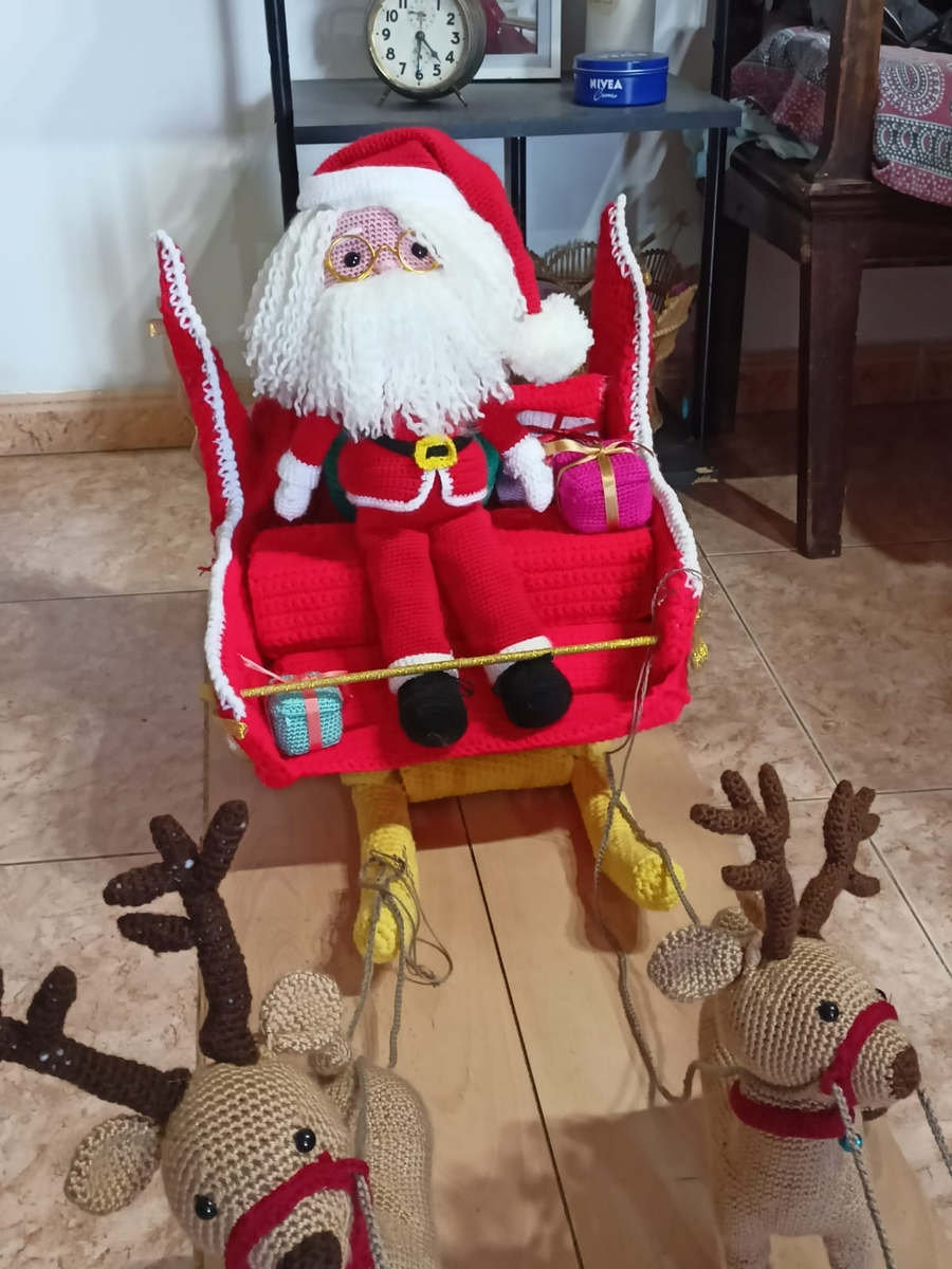 Entre las novedades destacan un muñeco de nieve y una recreación completa de Papá Noel en su trineo guiado por renos, todo ello tejido a mano. Estas piezas específicas han sido un regalo de las vecinas Amor, María José y Paquita Fuentes Redero, reconocidas como grandes colaboradoras de la Asociación, quienes han donado su trabajo para el disfrute de todos los vecinos.