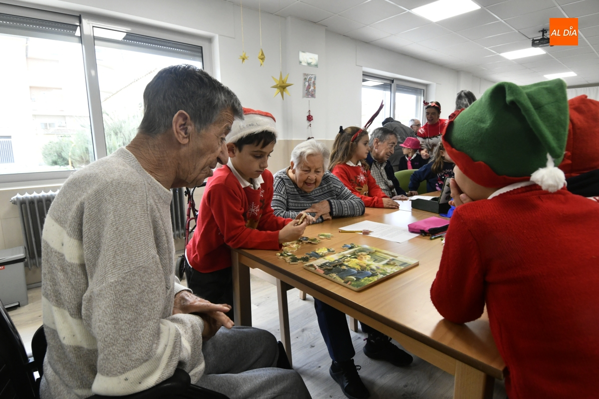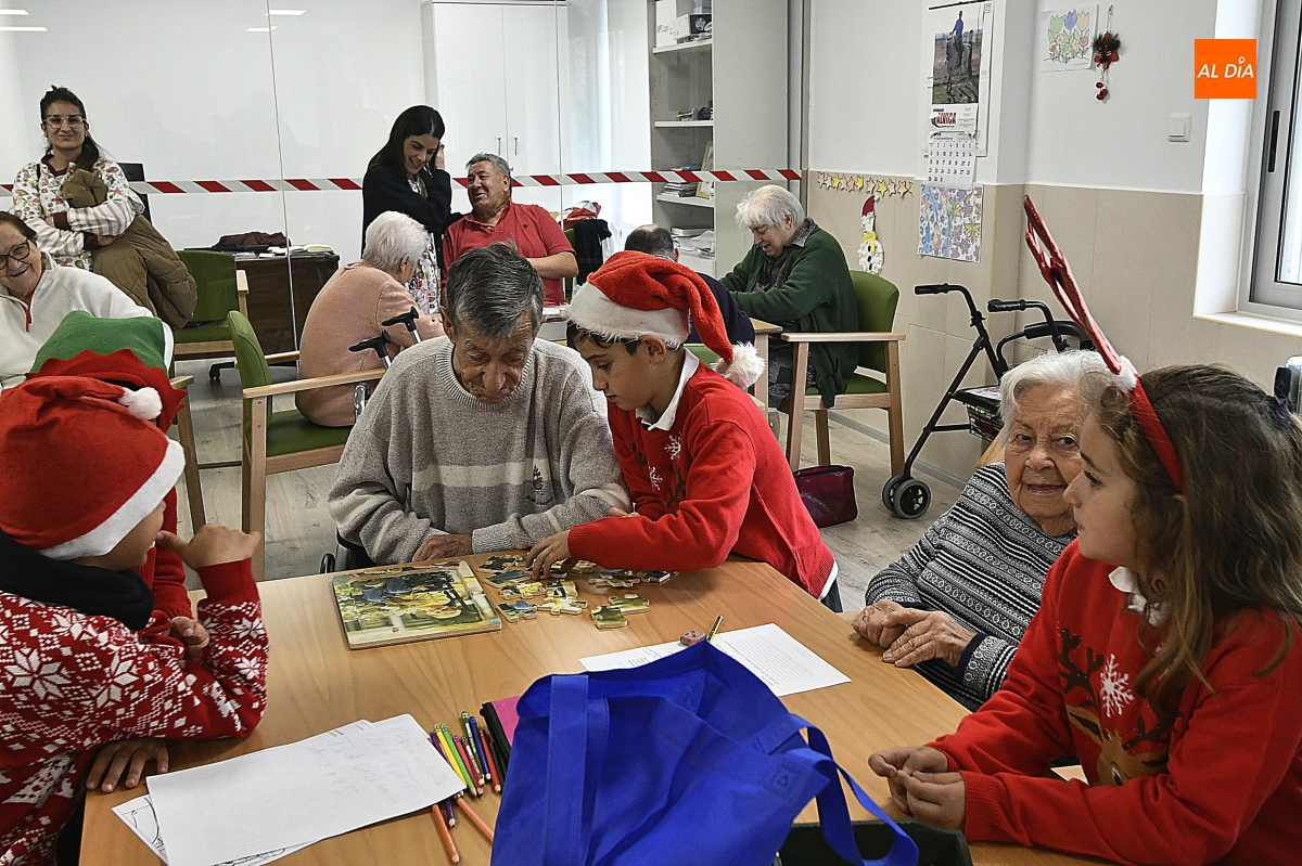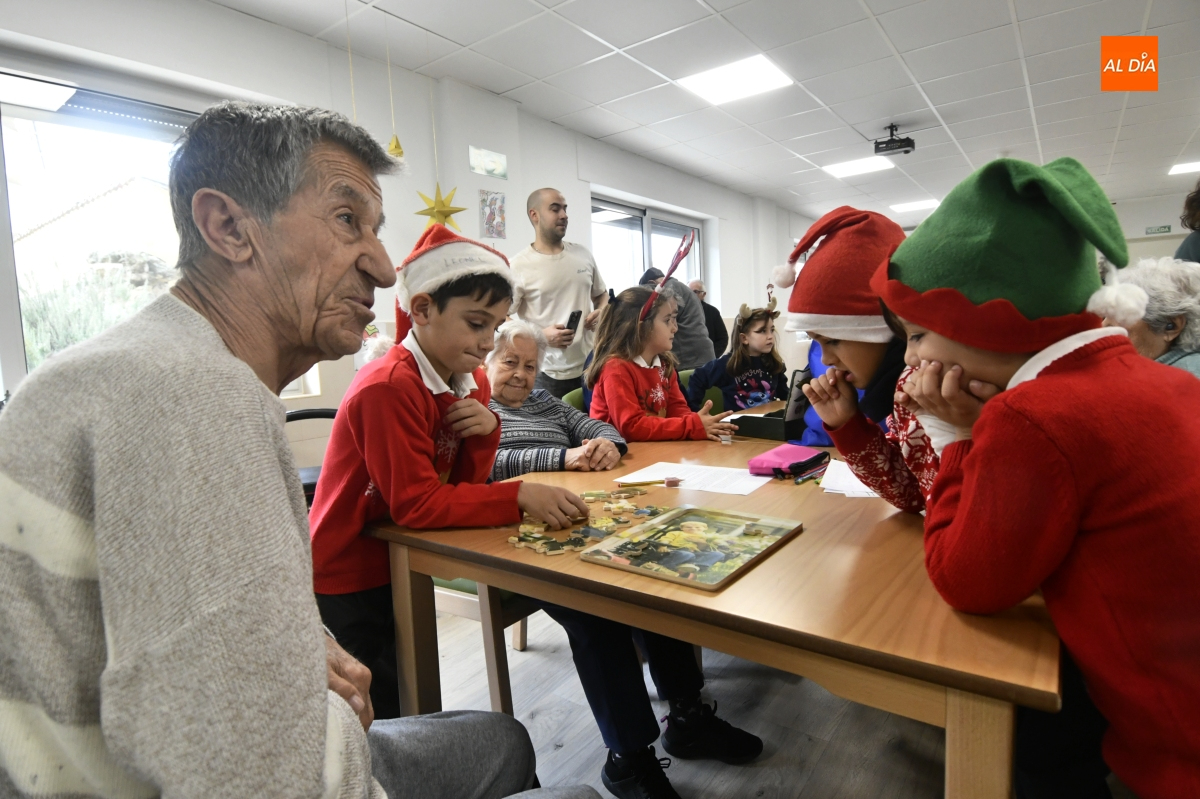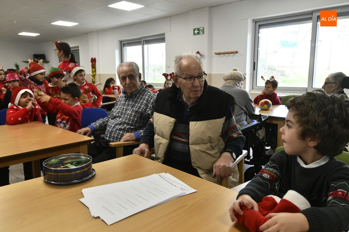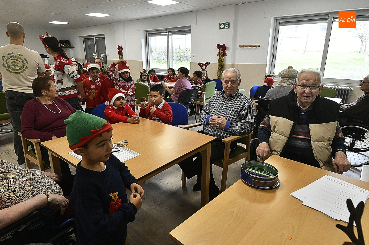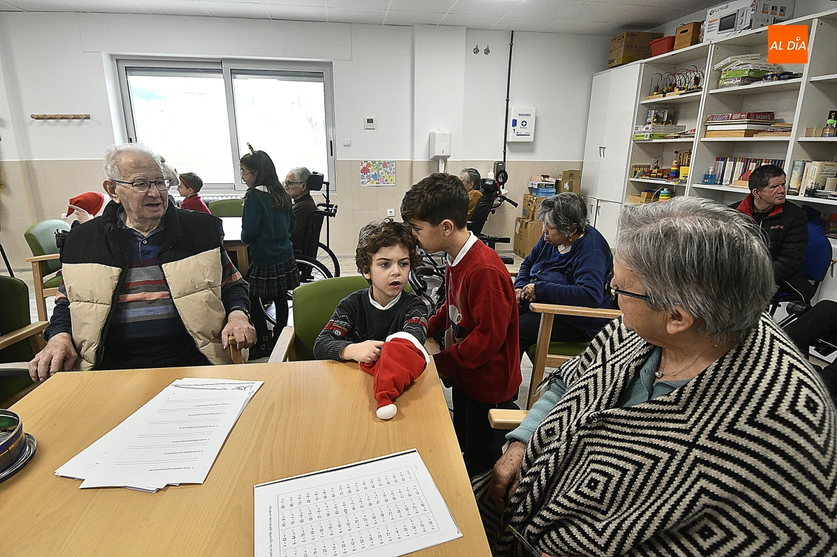 La jornada comenzó con un recorrido por el centro, donde los escolares pudieron contemplar de primera mano el cuidado Belén instalado en el patio, una escena que sirvió de preámbulo a un encuentro cargado de simbolismo. Pronto, la visita se transformó en convivencia: juegos de mesa, charlas pausadas y el intercambio de recuerdos y anécdotas tejieron un diálogo natural entre generaciones.