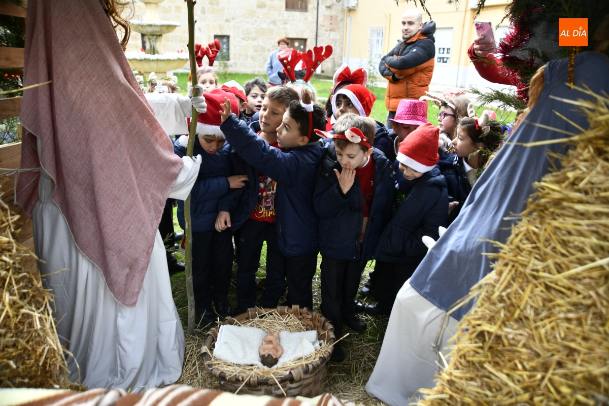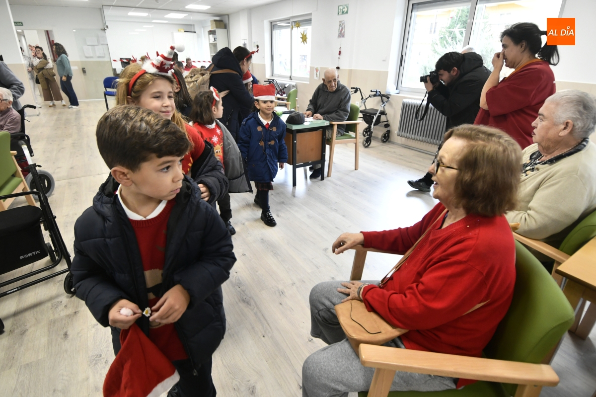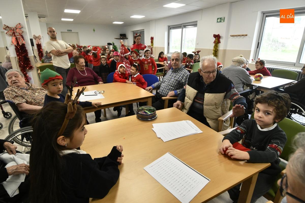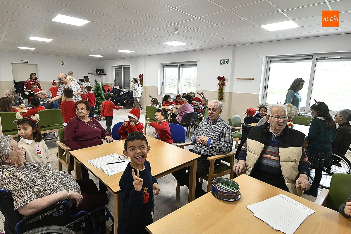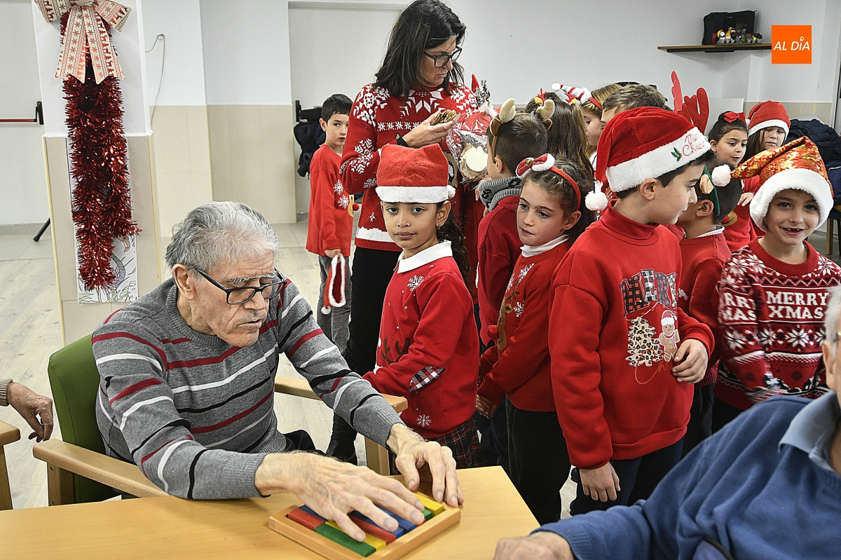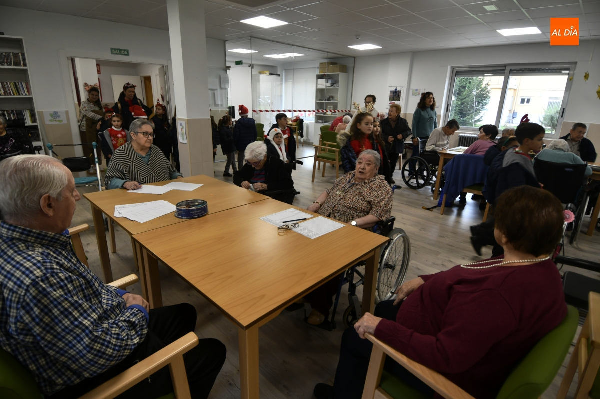 La jornada comenzó con un recorrido por el centro, donde los escolares pudieron contemplar de primera mano el cuidado Belén instalado en el patio, una escena que sirvió de preámbulo a un encuentro cargado de simbolismo. Pronto, la visita se transformó en convivencia: juegos de mesa, charlas pausadas y el intercambio de recuerdos y anécdotas tejieron un diálogo natural entre generaciones.