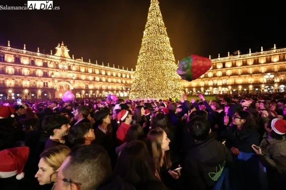 Salamanca estalla de júbilo en un ágora abarrotada para despedirse de 2025 y dar la bienvenida al nuevo año entre gominolas, risas y abrazos