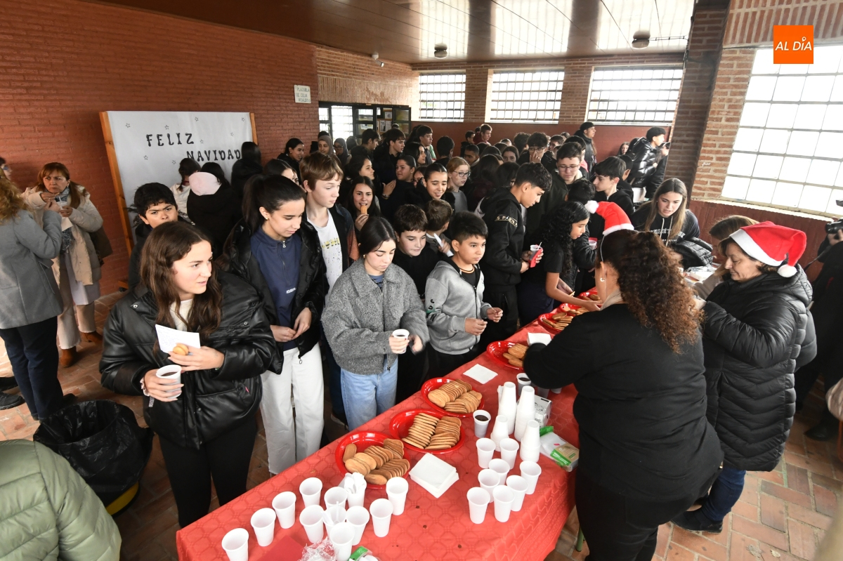 Concierto de Navidad entre alumnos y profesores del IES y el CEIP Miróbriga junto con el AMPA que repartió chocolate caliente