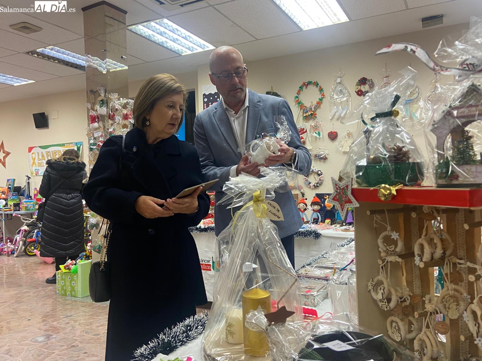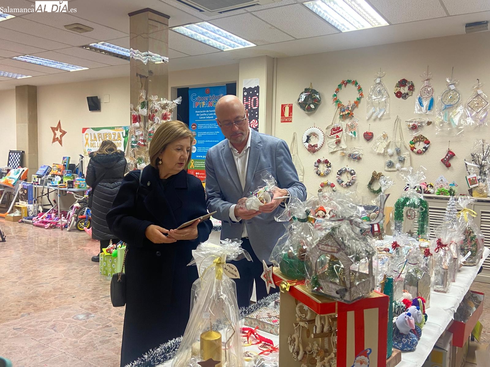 La Navidad en Salamanca tiene una cita ineludible con la solidaridad. La Asociación de Padres, Familiares y Amigos de Niños Oncológicos de Castilla y León (Pyfano) ha inaugurado este jueves su tradicional mercadillo navideño, que alcanza ya su decimotercera edición. El acto de apertura ha tenido lugar en el antiguo edificio de la Caja de Ahorros y Monte de Piedad, un espacio cedido por Unicaja para la ocasión, y ha contado con la presencia de la subdelegada del Gobierno en Salamanca, Rosa María López, y el presidente de la asociación, Miguel Ángel Vicente.