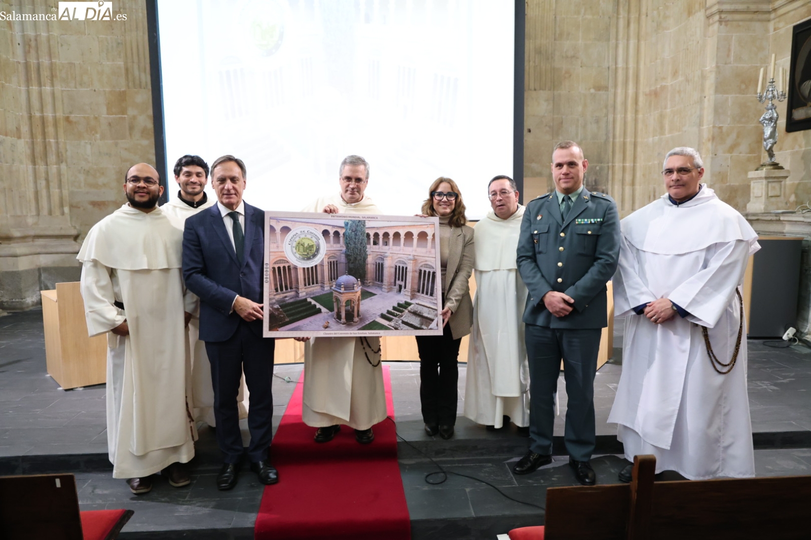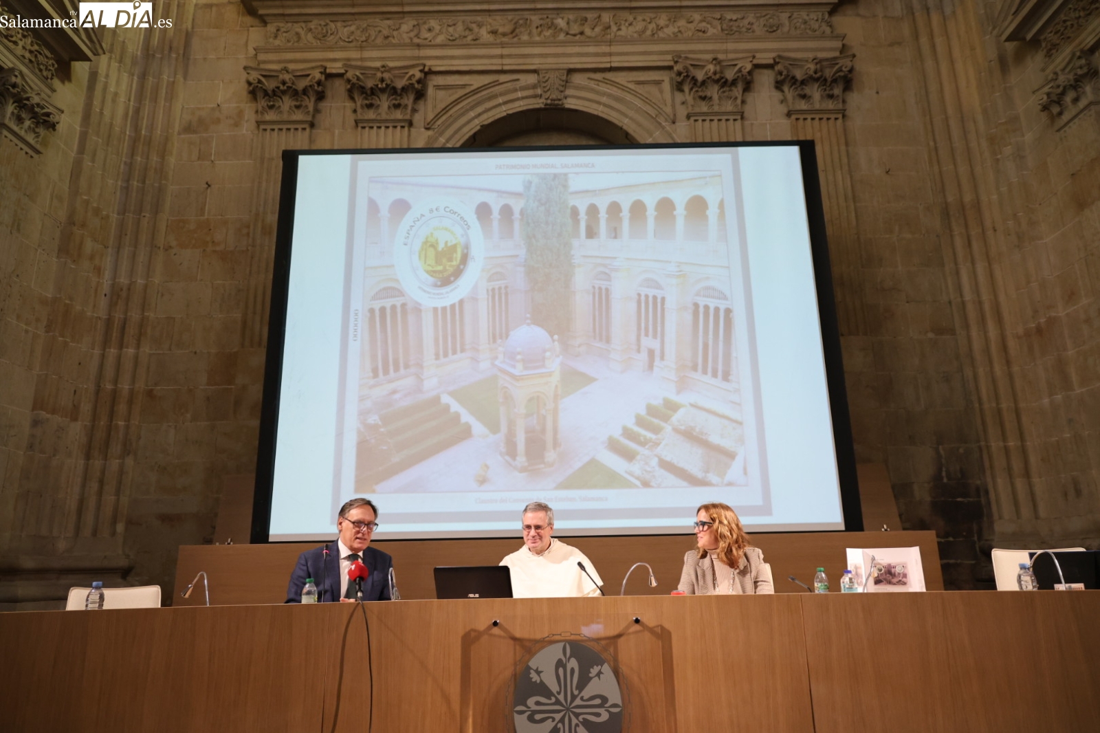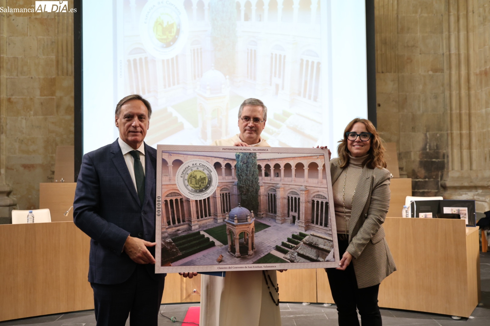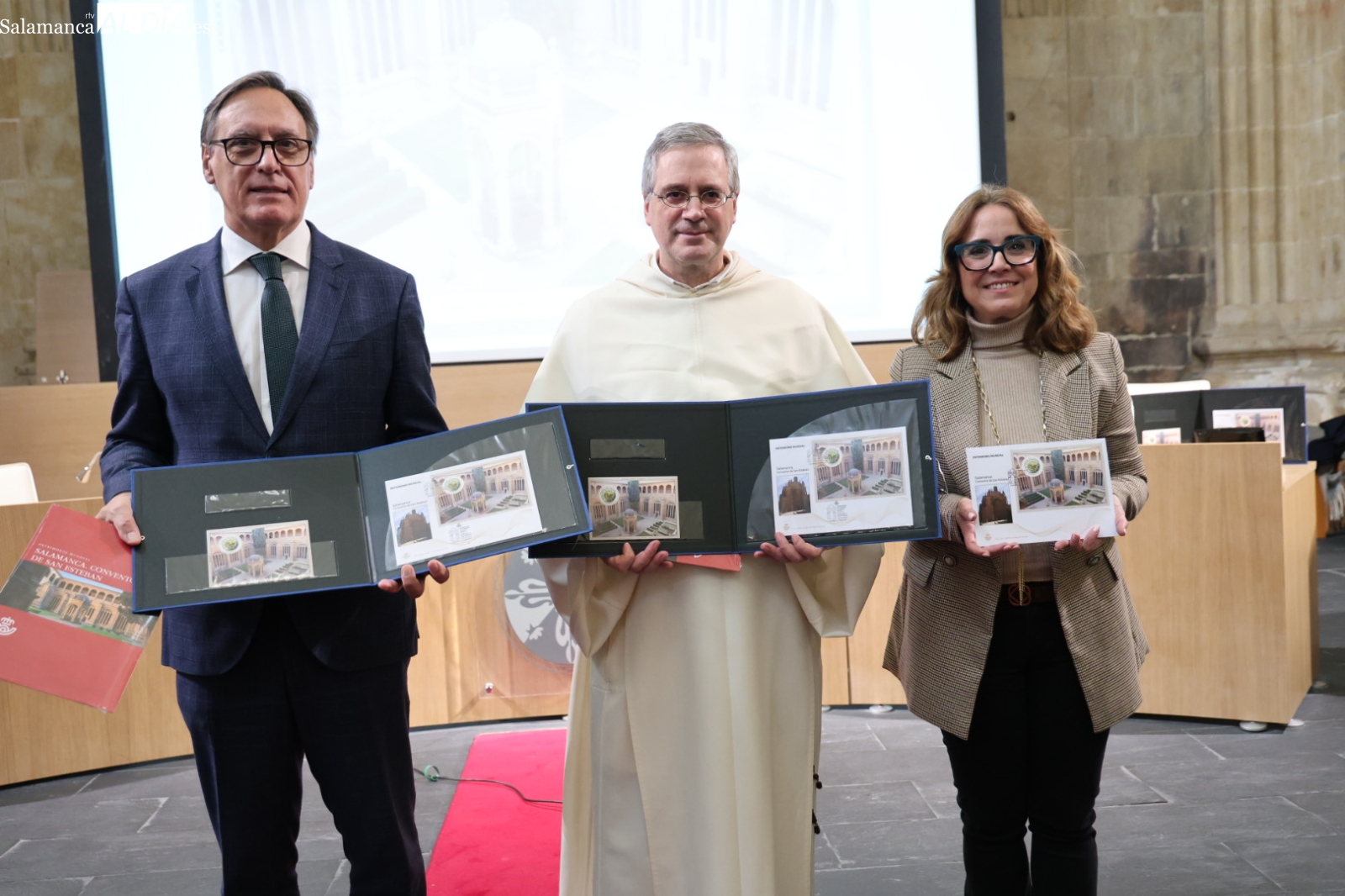 El acto de presentación ha tenido lugar esta mañana y ha contado con la participación del alcalde de Salamanca, Carlos García Carbayo; el prior de los dominicos, Manuel Ángel Martínez; y la directora de Filatelia y Relaciones Institucionales de Correos, Nuria Lera. Durante su intervención, el regidor municipal ha puesto en valor la relevancia del convento de San Esteban para comprender la monumentalidad de la capital del Tormes.