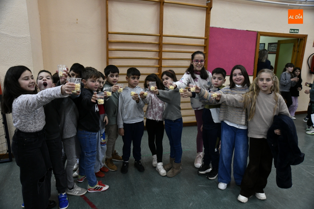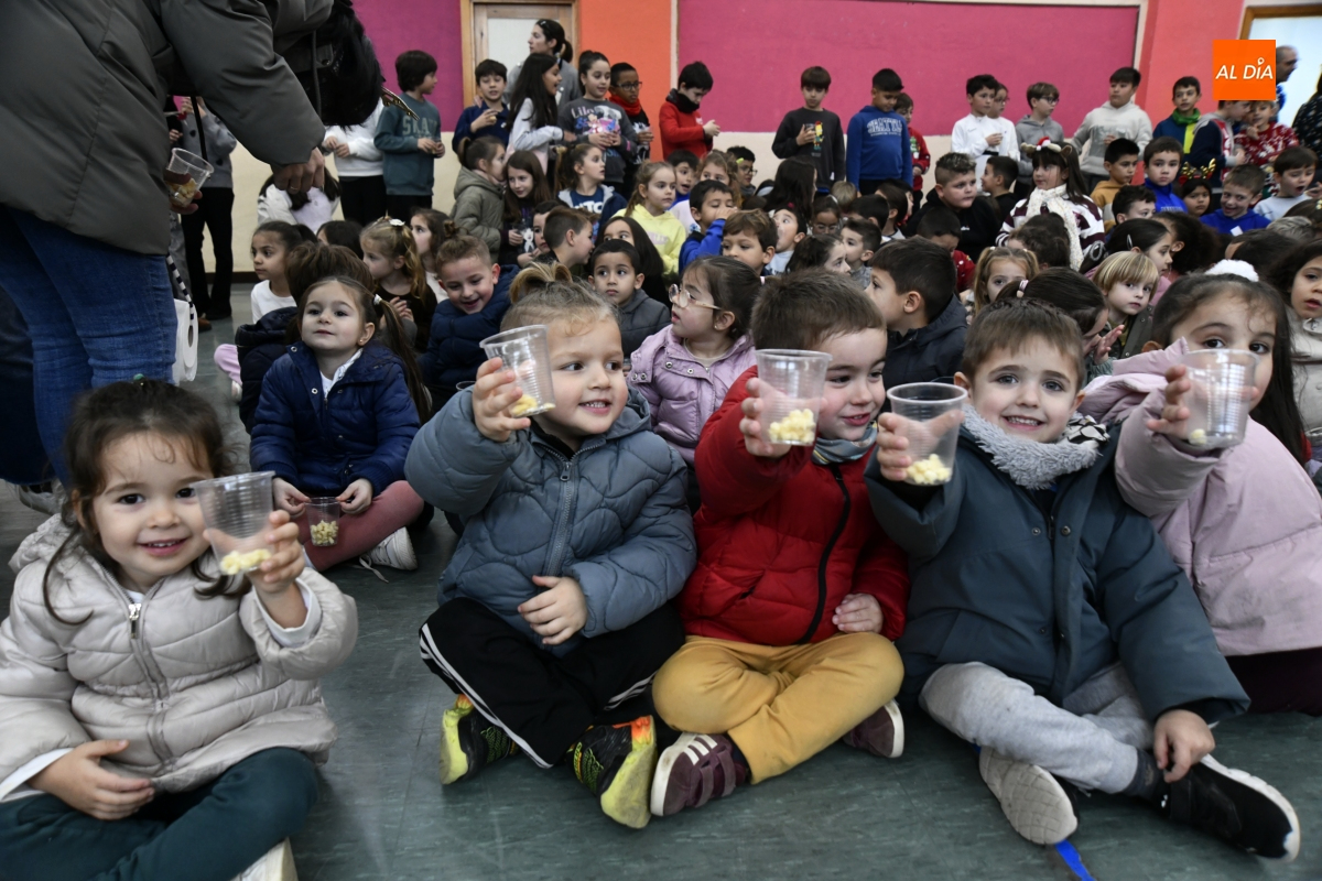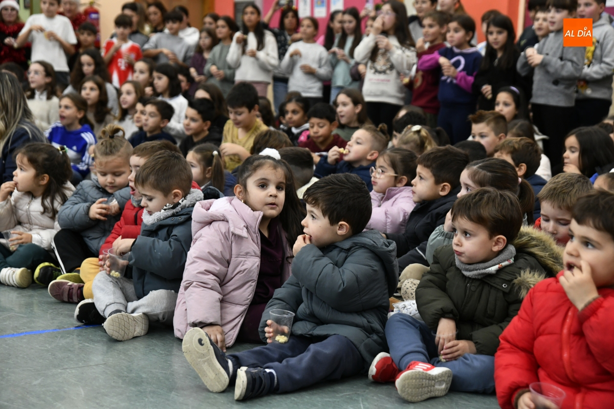 El CEIP Miróbriga de Ciudad Rodrigo ha celebrado una Nochevieja escolar anticipada para concluir las actividades del primer trimestre. Alumnos y profesores despidieron el año 2025 comiendo doce palomitas en lugar de las tradicionales uvas al son de las campanadas en el gimnasio del centro.