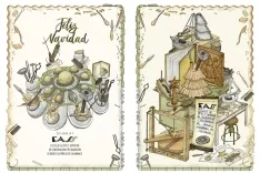 Karla, con su propuesta de felicitación, nos ha trasladado a otros tiempos, a la niñez y al recuerdo de lo que somos, de la tradición de muchos de nuestros estudios con un sinfín de objetos relacionados con sus talleres, iconos de un ayer que serán virtudes de un mañana. Los tonos ocres y verdes que dominan su obra son un homenaje al pasado que es un presente a través de estos talleres y clases, pero también un gran futuro en esta nueva era digital donde lo manual, artesanal y artístico será especialmente cotizado.