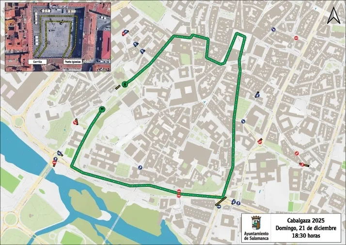 Los conductores que transiten por Salamanca este domingo, 21 de diciembre, deberán prestar especial atención a la señalización y a las indicaciones de los agentes. La celebración de la tradicional Carrera del Pavo 2025 y el desfile de la Cabalgaza implicarán el cierre temporal de varias avenidas y calles principales, así como cambios de sentido en vías estratégicas para facilitar el acceso a garajes.