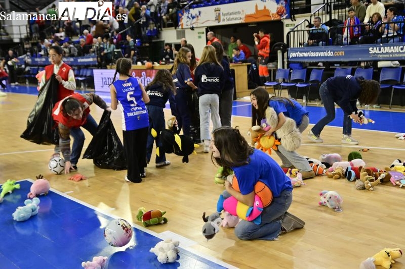 Todo el material recaudado se destinará a los programas de Cruz Roja Juventud en Salamanca, que se encargará de su distribución entre los menores en riesgo de exclusión social de la provincia. Ha sido el último partido -ante Ferrol- del Perfumerías Avenida en casa este 2025.