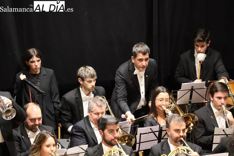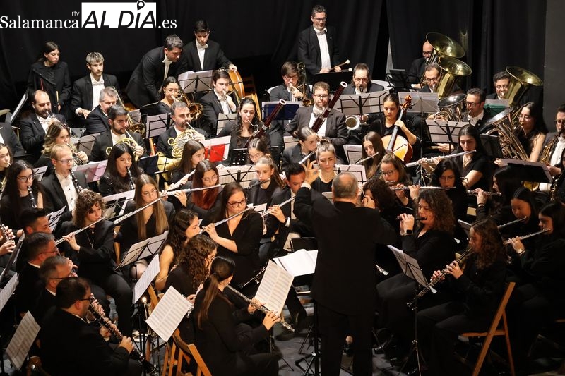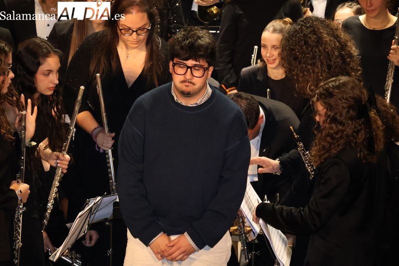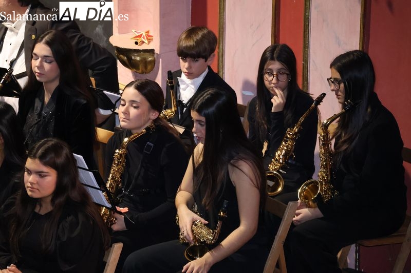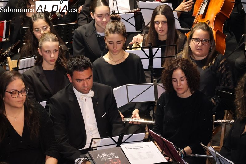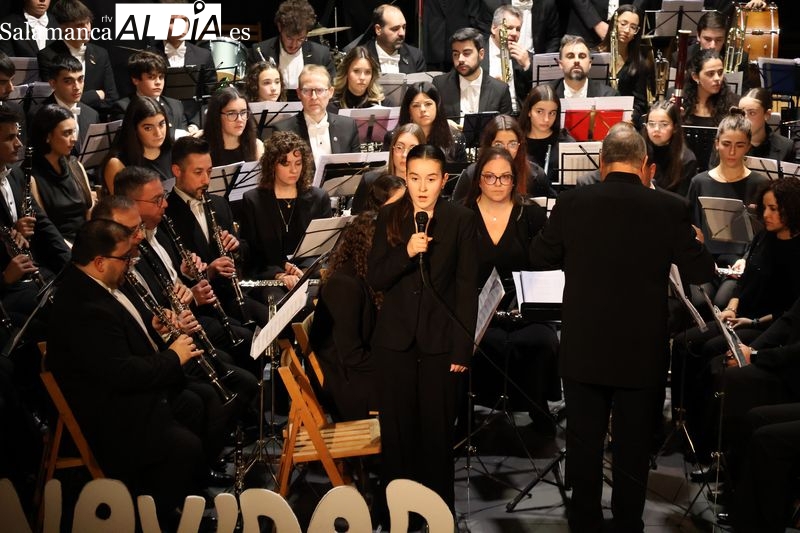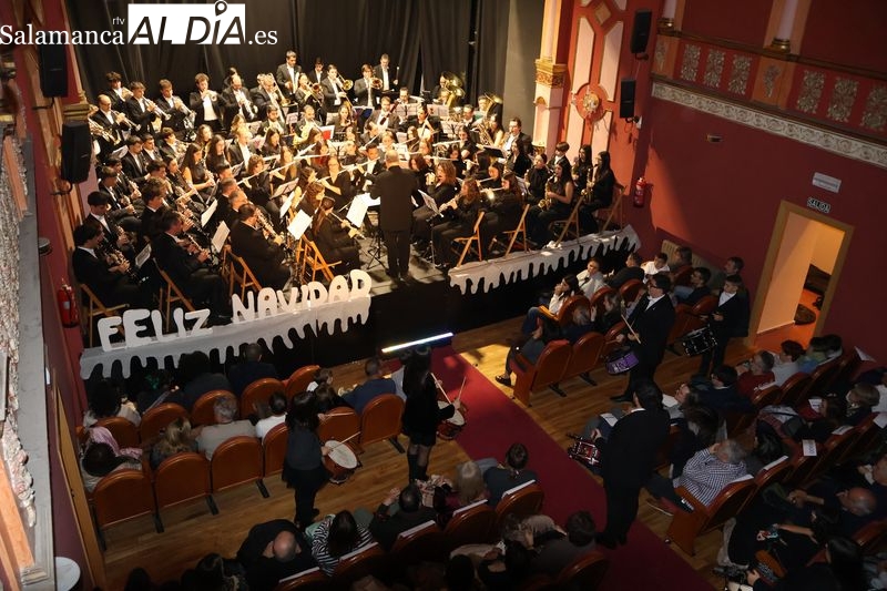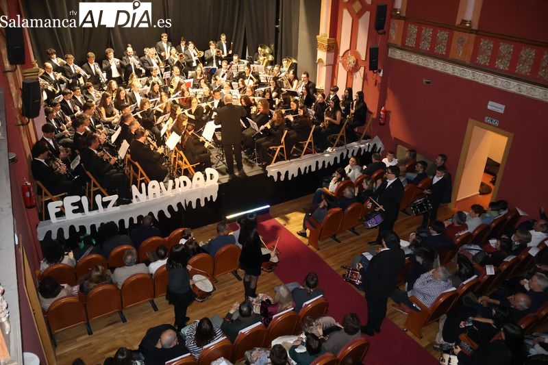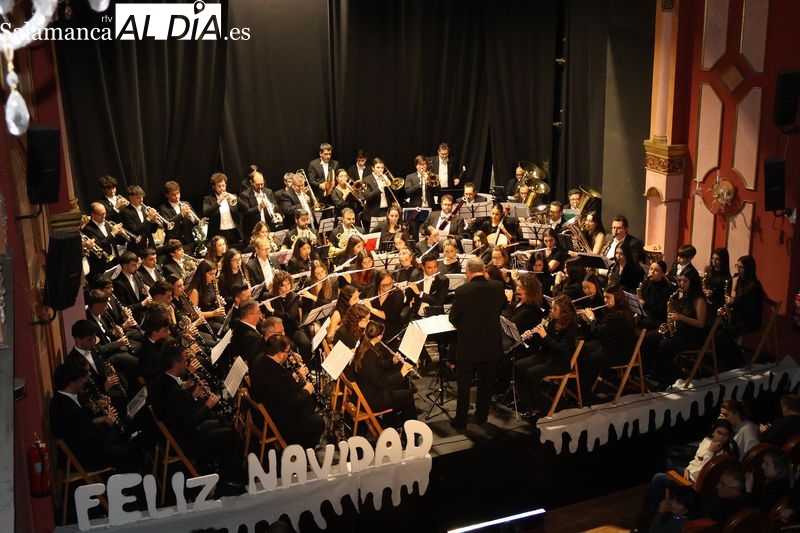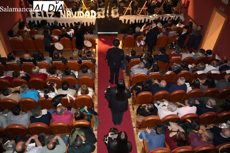La Banda de Música de Alba de Tormes ha ofrecido este domingo, 21 de diciembre, su tradicional Concierto de Navidad en el Teatro de la Villa. La actuación ha tenido como eje central el estreno absoluto del pasodoble taurino Ángeles de la Guarda, una composición de Jaime Jiménez Pérez.