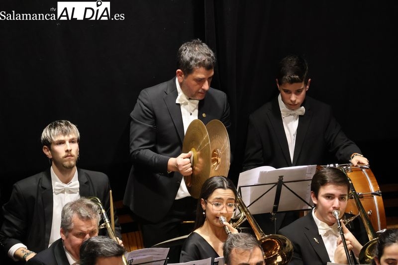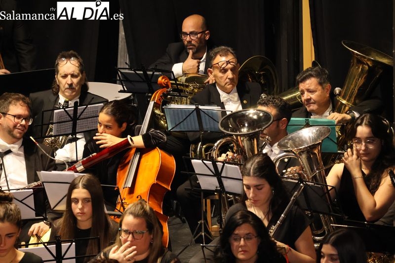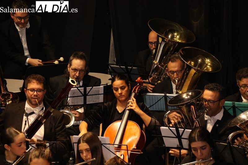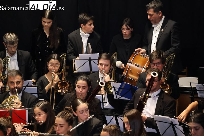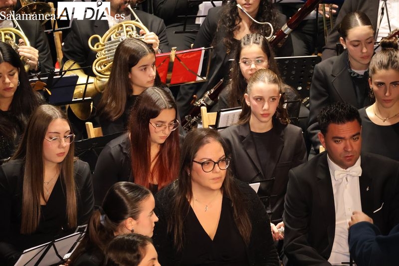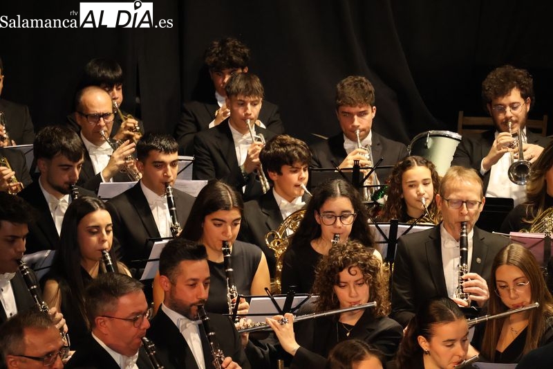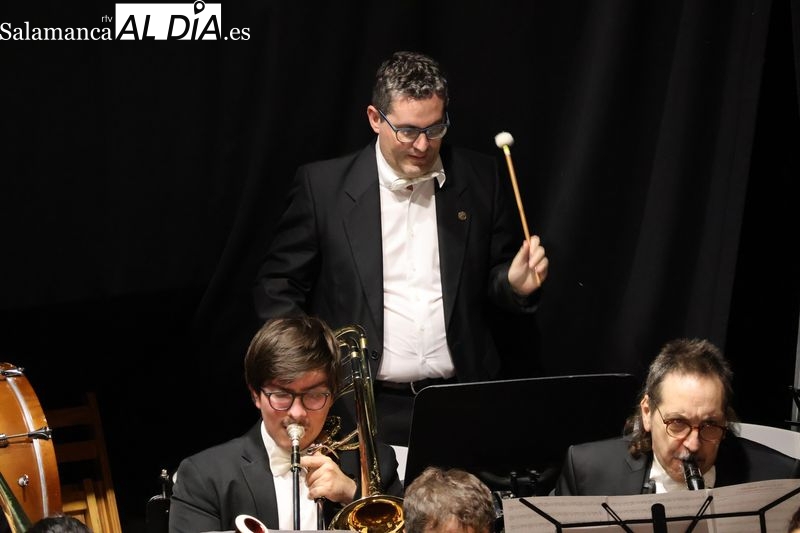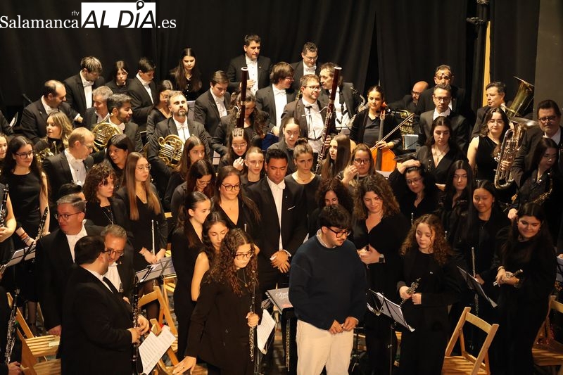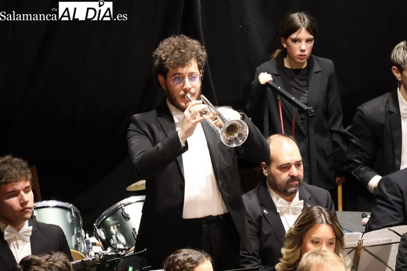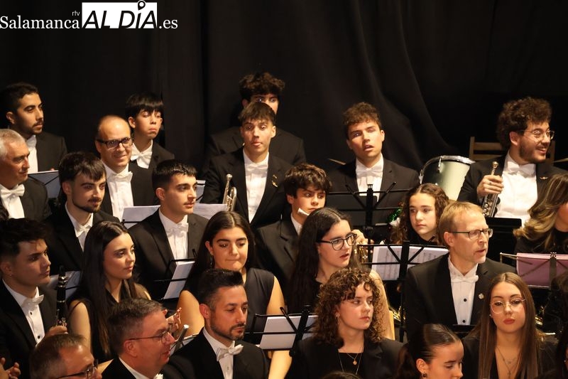 La Banda de Música de Alba de Tormes ha ofrecido este domingo, 21 de diciembre, su tradicional Concierto de Navidad en el Teatro de la Villa. La actuación ha tenido como eje central el estreno absoluto del pasodoble taurino Ángeles de la Guarda, una composición de Jaime Jiménez Pérez.
