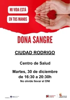 Nuevo día para la donación de sangre en el Centro de Salud. Todas las personas que deseen colaborar donando un poco de sí mismas para un bien común podrán hacerlo el próximo martes 30 de diciembre. La jornada se desarrollará en horario de 16:30 a 20:30 horas, siendo obligatorio presentar el DNI.