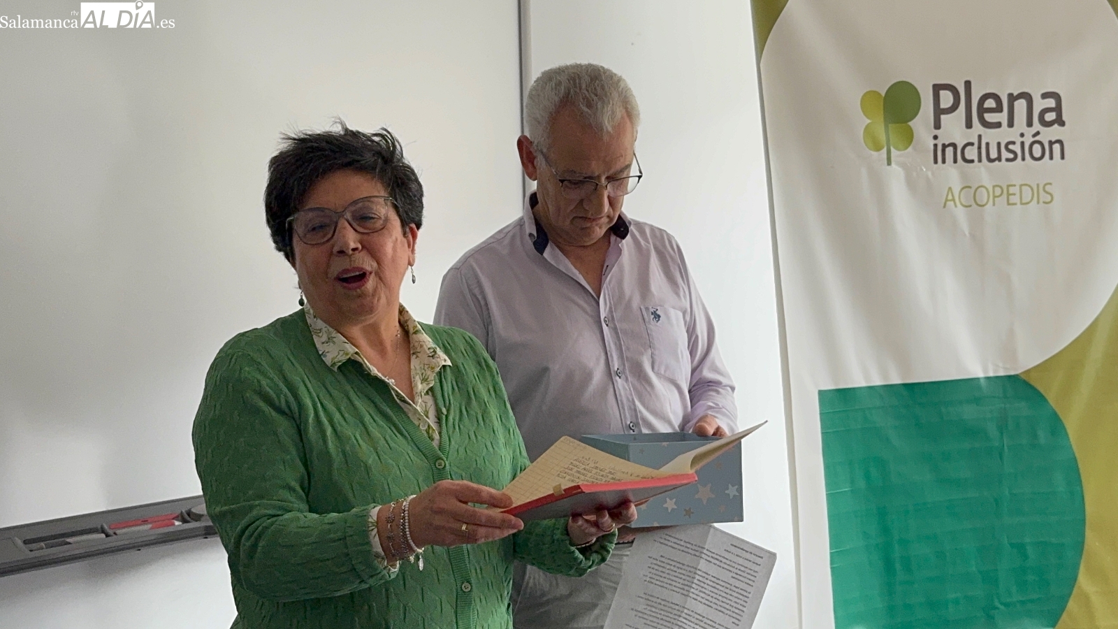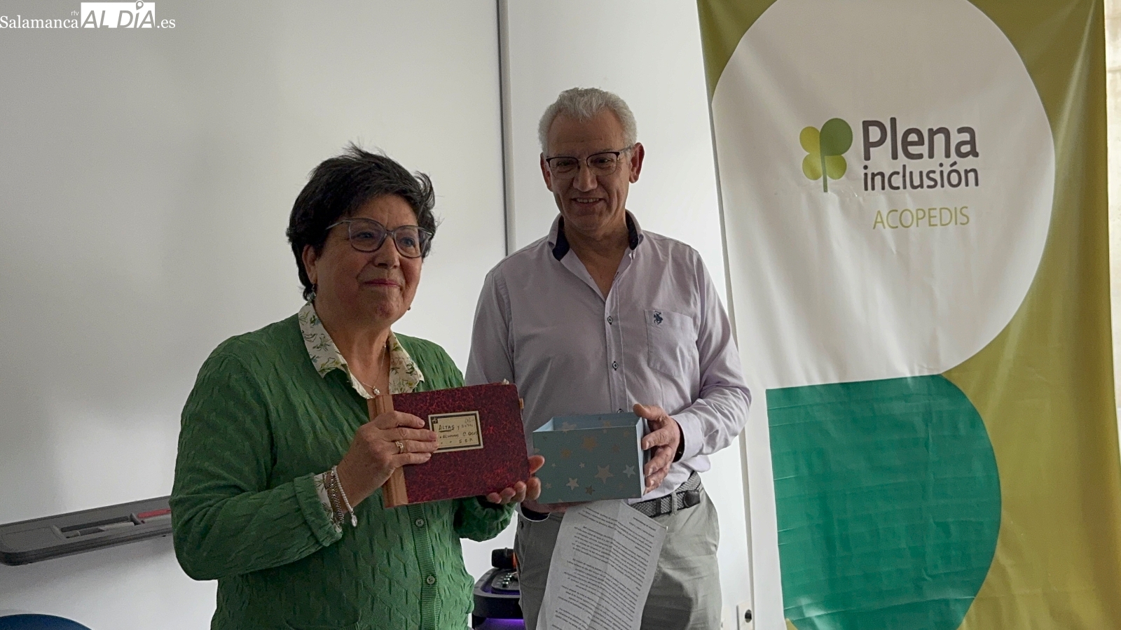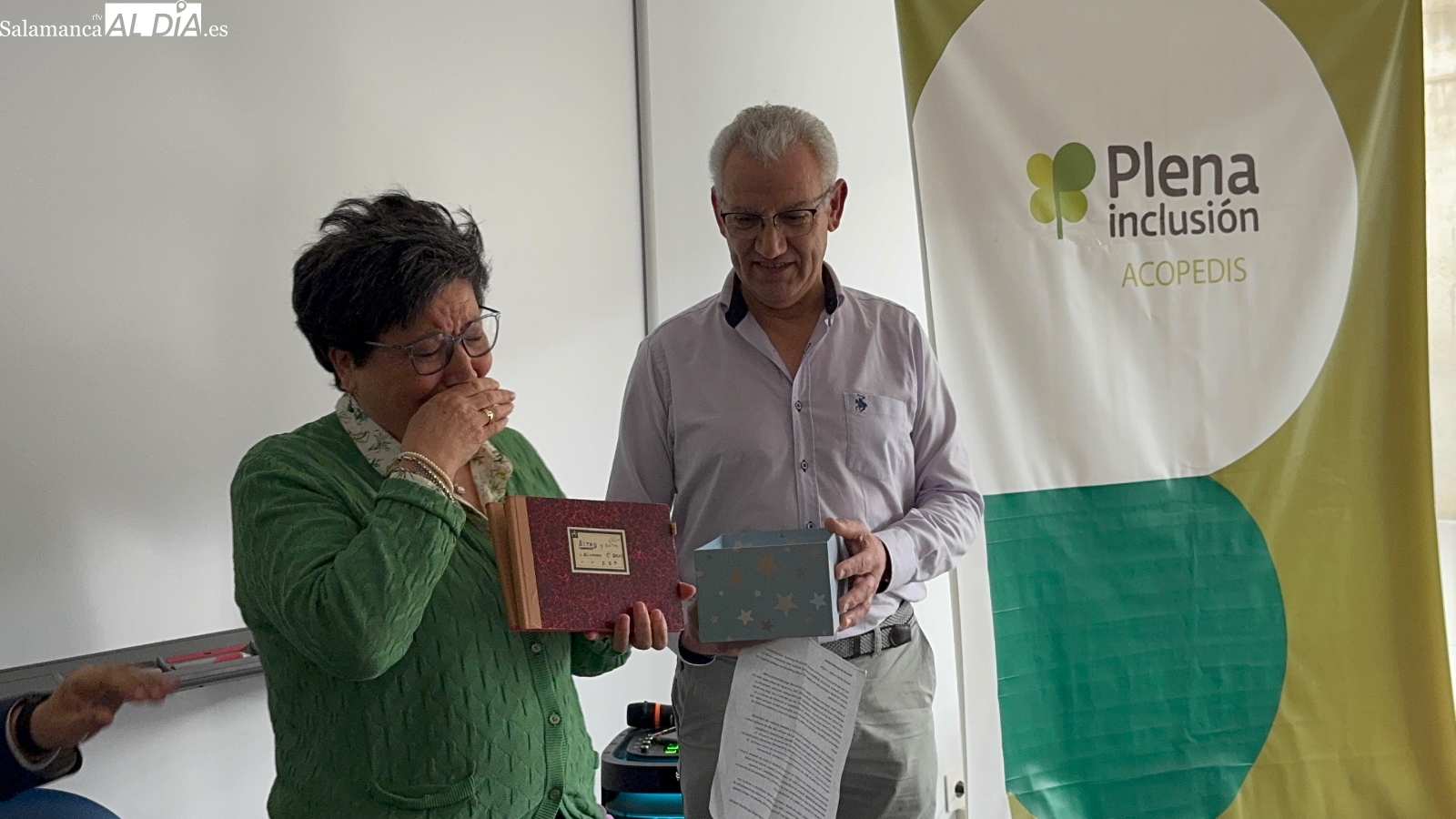 Felisa Gómez, Trabajadora Social del Ayuntamiento y una de las impulsoras en la creación de Acopedis, recogía emocionada la placa de homenaje, sorprendiendo a los presentes con un regalo que ella ha querido hacer al colectivo: el primer libro de altas y bajas que registraba la actividad inicial de la asociación. Un momento cargado de emoción en el que, entre lágrimas, recordaba los nombres de los primeros integrantes de aquella iniciativa, hoy convertida en un referente provincial y regional.
