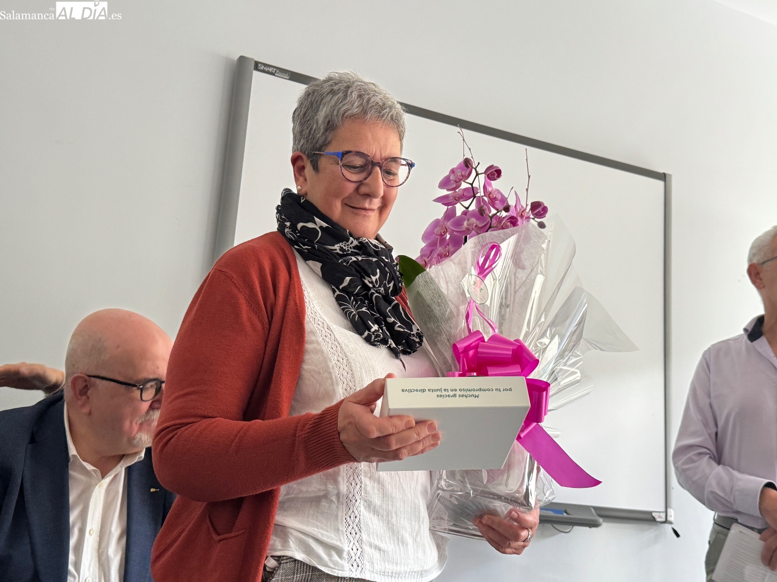Rosana González, integrante de Junta Directiva desde 2011 y otra de las impulsoras en la creación de Acopedis durante su periodo de concejal en el Ayuntamiento de Peñaranda, se mostraba igualmente emocionada al recibir la placa en su retirada del equipo directivo, destacando su agradecimiento a todos por el cariño recibido.