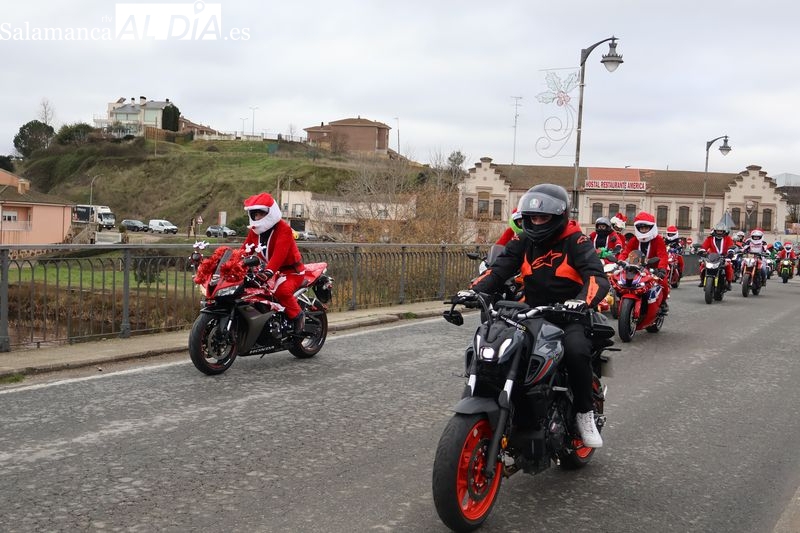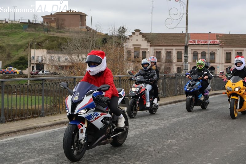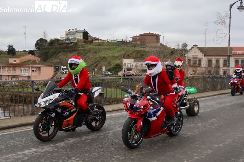 Decenas de motoristas llenan de ambiente navideño Alba de Tormes con la tradicional Papanoelada motera