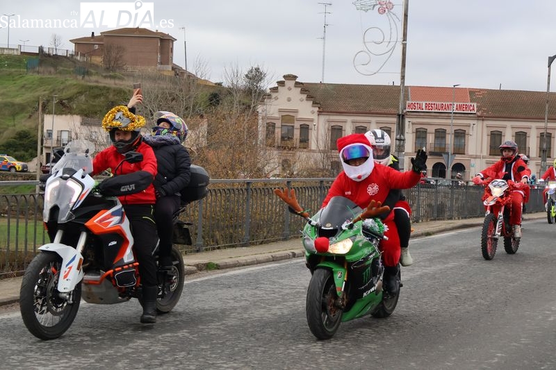 La Papanoelada motera matinal se ha celebrado este miércoles, 24 de diciembre, aportando un año más un ambiente festivo y navideño a las calles de Alba de Tormes. A partir de las 11:15 horas, decenas de motoristas, ataviados con disfraces y complementos propios de estas fechas, parten desde el Hostal América para iniciar un recorrido por el municipio.