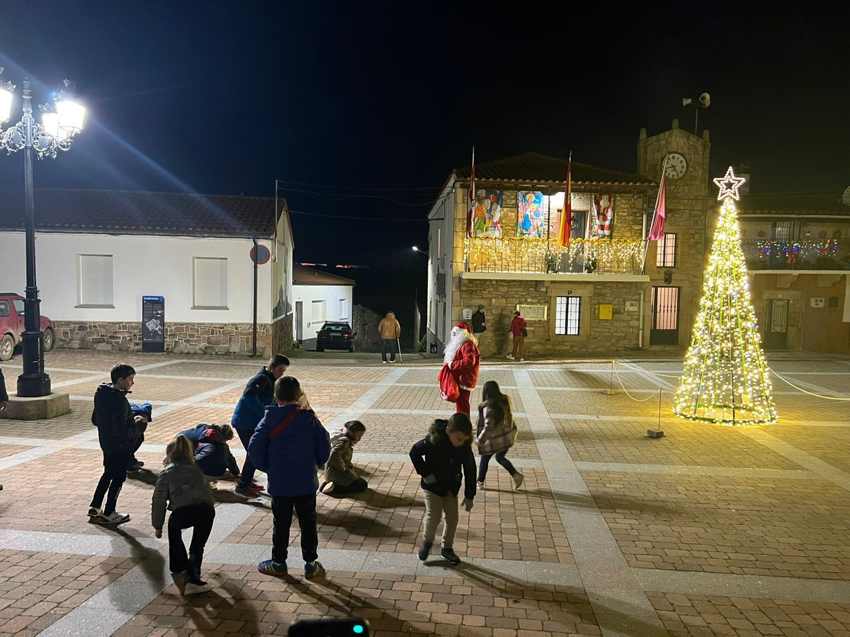 Santa Claus repartió caramelos y chucherías a 25 niños, una celebración que se complementa con un concurso de decoración de fachadas organizado por el Ayuntamiento, que ha contado con una notable participación vecinal