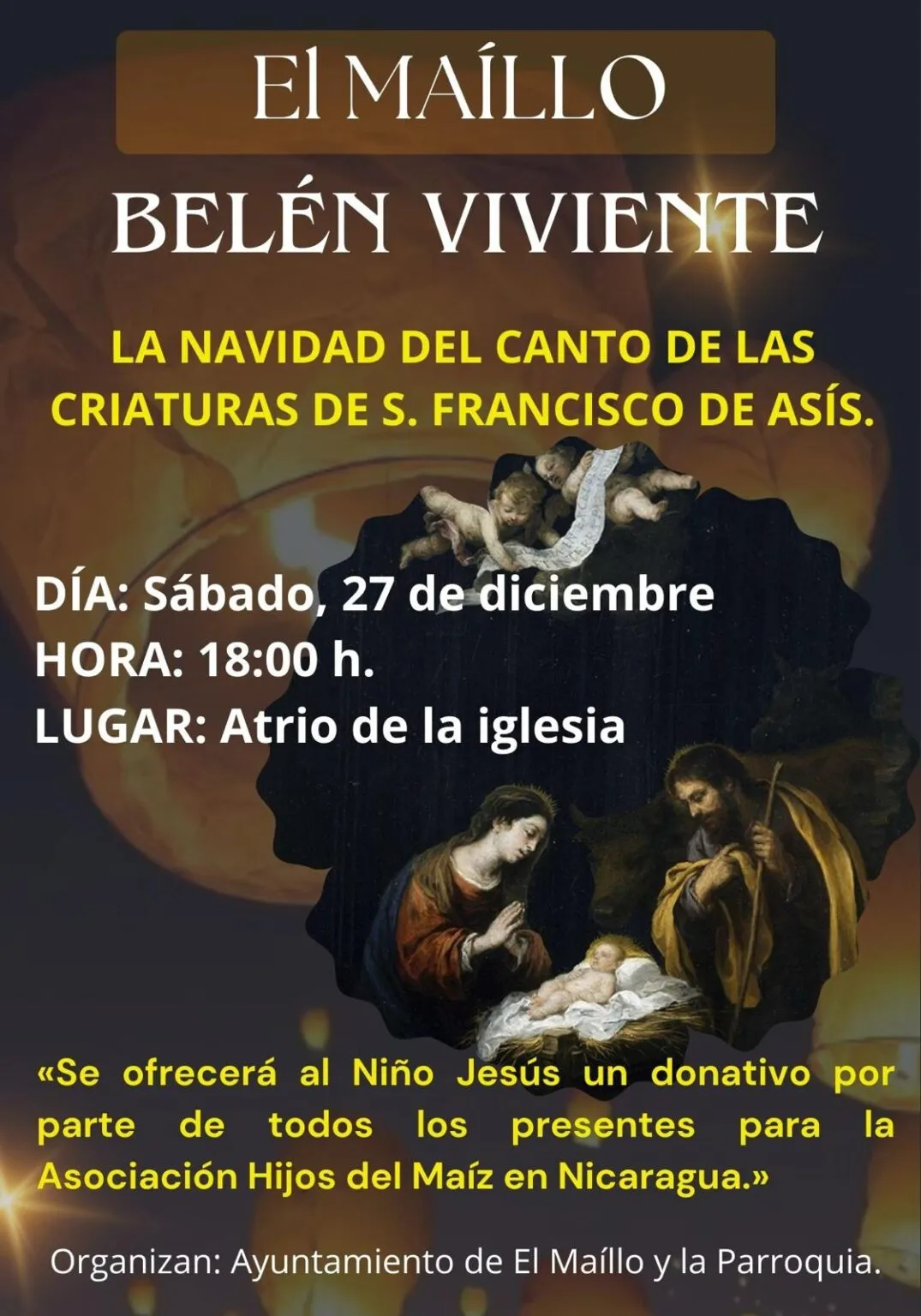 Además, más allá de su dimensión cultural y catequética, durante la representación del Belén Viviente los asistentes podrán realizar un donativo solidario. La recaudación íntegra se destinará a apoyar la labor de la Asociación Hijos del Maíz en Nicaragua, una organización que trabaja en proyectos de desarrollo y asistencia en el país centroamericano.