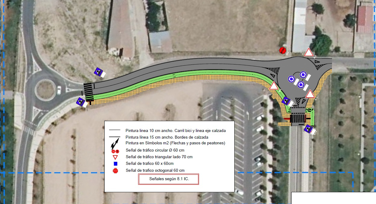 La intervención se divide en dos proyectos diferenciados. El primero de ellos cuenta con un presupuesto base de licitación de 300.714 euros y un plazo de ejecución de cuatro meses. Los trabajos se centrarán en el tramo del Camino del Río Primera, entre la avenida de La Aldehuela y la rotonda del Camino de los Frailes. Se construirá un vial con calzada bidireccional, carril bici y acera peatonal. Además, se habilitará una nueva rotonda en el entronque con la avenida para facilitar el cambio de sentido de vehículos grandes, como autobuses, y se creará una acera adicional para mejorar la seguridad de los usuarios del aparcamiento gratuito y del futuro parking de autocaravanas.