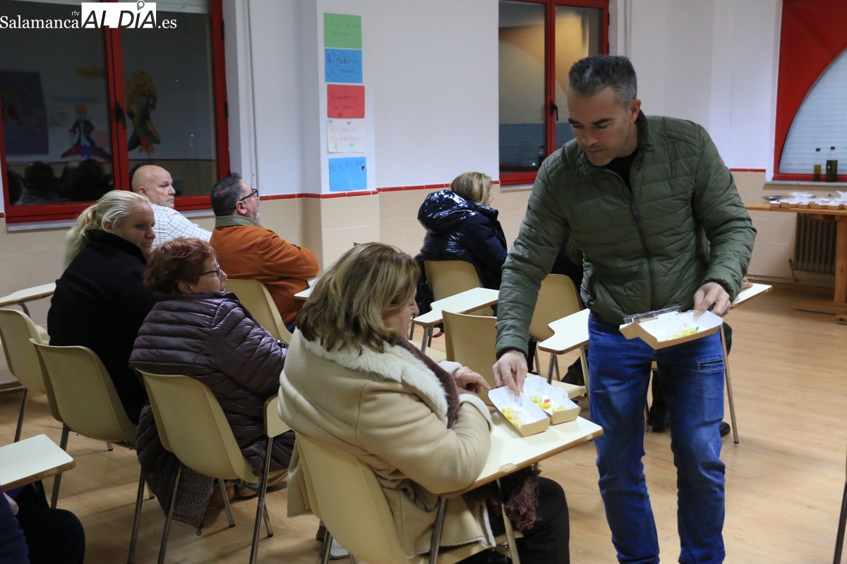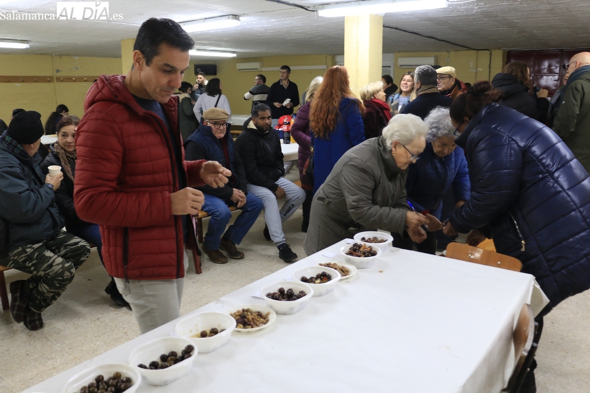 La celebración se ha trasladado posteriormente a los bajos del Centro Cultural, donde la gastronomía ha tomado el protagonismo. Se ha celebrado el concurso de aliñado de aceitunas, en el que se han presentado un total de ocho guisos diferentes. Los vecinos y visitantes han tenido la oportunidad de degustar las diferentes propuestas y emitir su voto para elegir las mejores preparaciones.