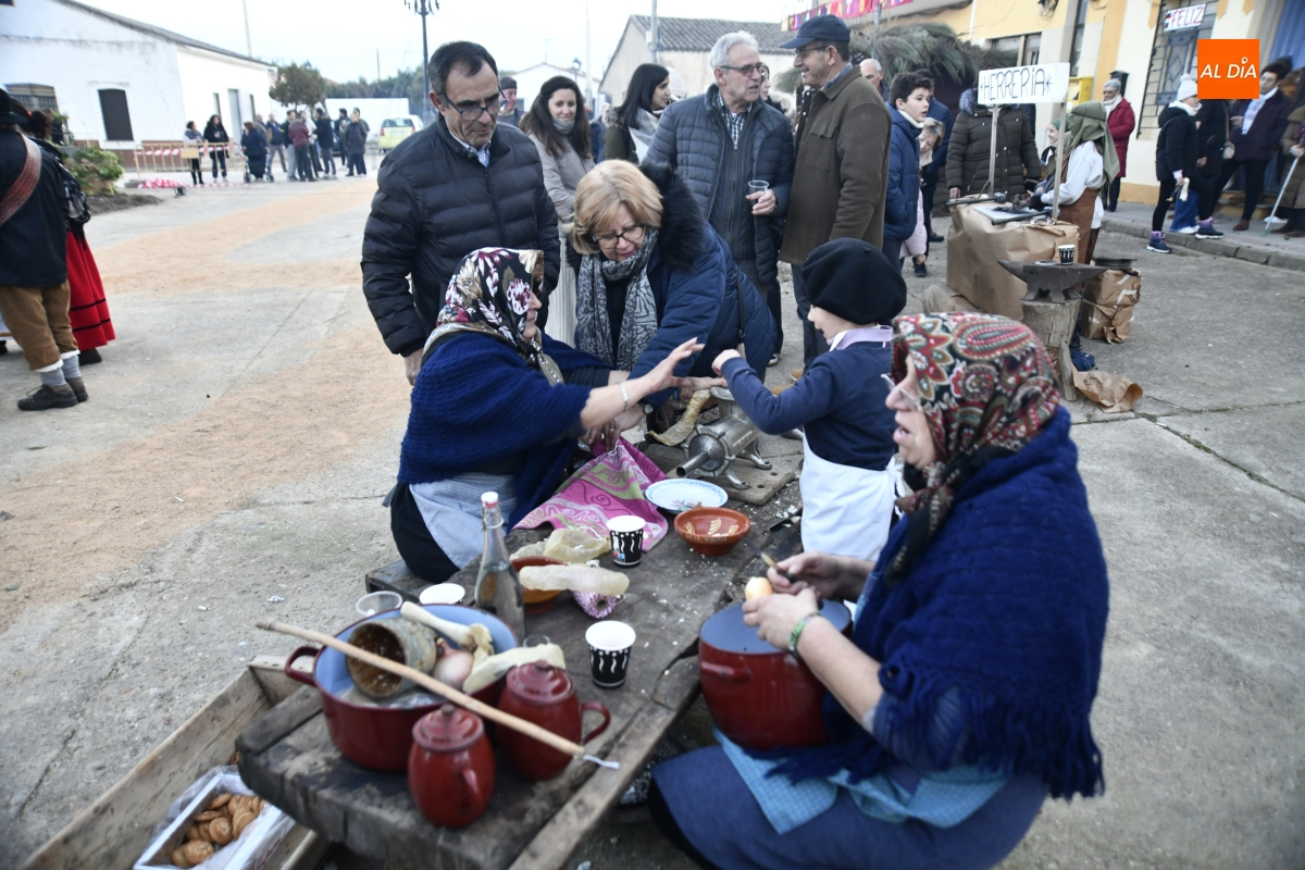 Para combatir las bajas temperaturas propias del invierno en la Tierra del Yeltes, la organización ha dispuesto dos grandes hogueras que han servido para caldear el ambiente. La jornada ha estado amenizada por la música tradicional de la gaita y el tamboril, poniendo la banda sonora a una tarde de convivencia.