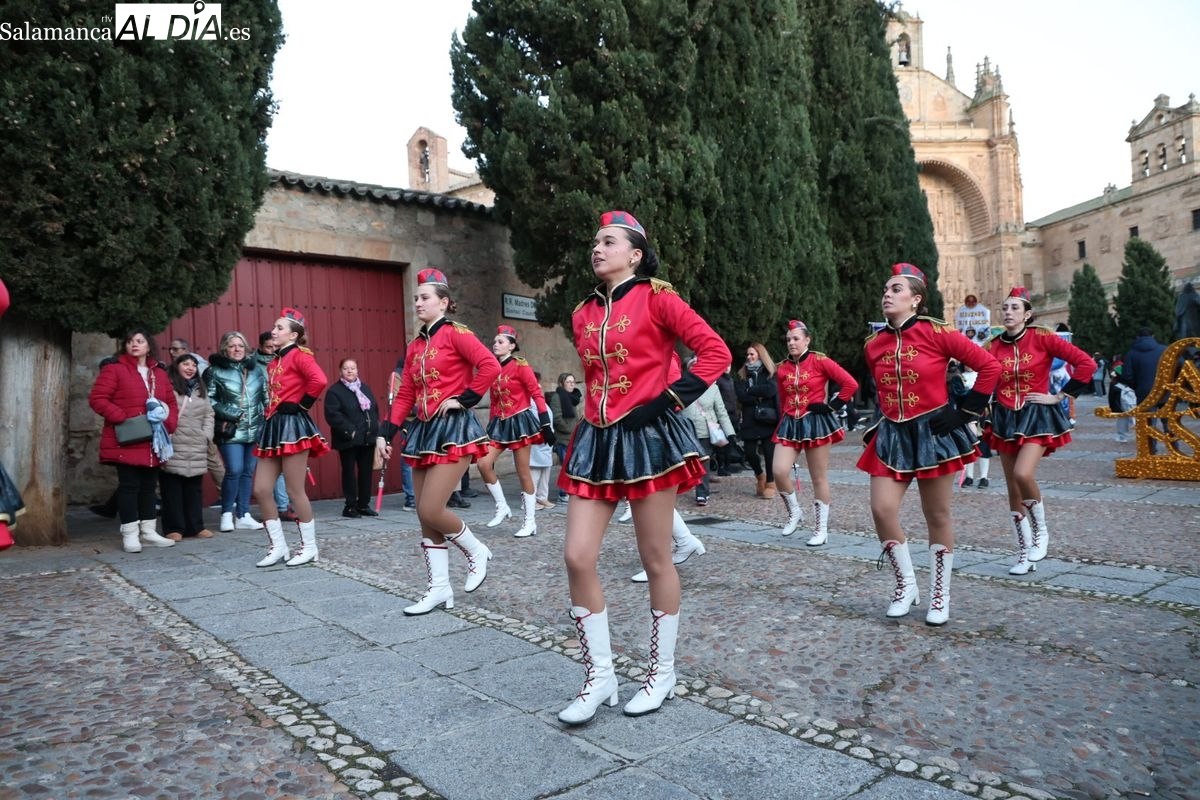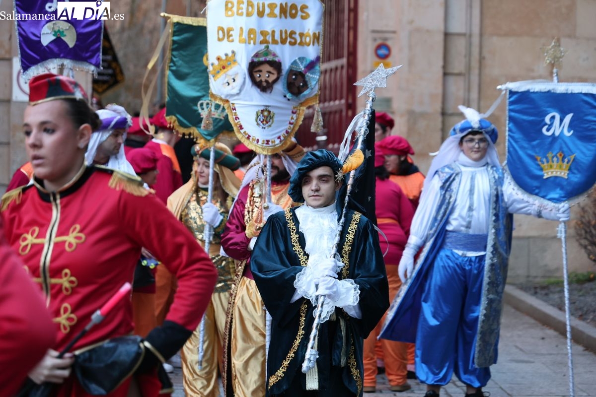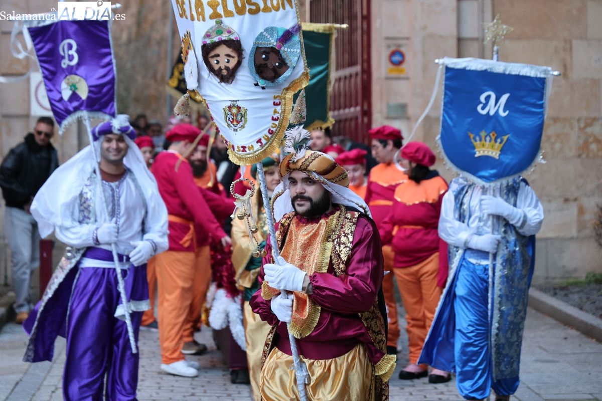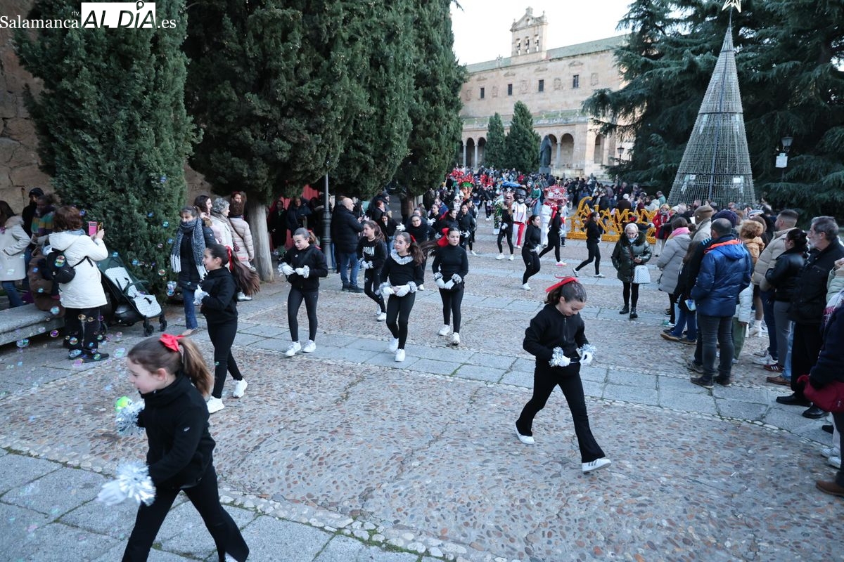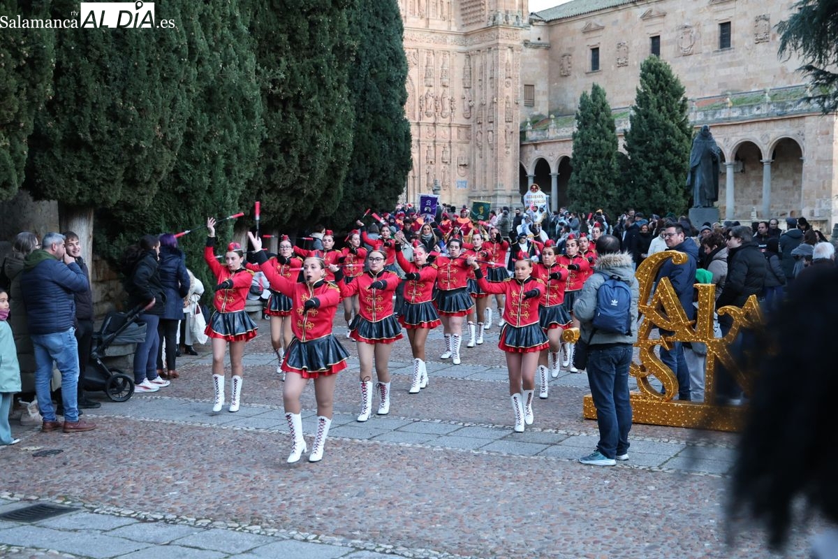 El paso por el ágora salmantina ha dejado imágenes para el recuerdo, con los grupos de animación y las formaciones musicales volcadas con los asistentes. El desfile ha culminado con la emotiva recepción a Sus Majestades los Reyes Magos, quienes han recogido las cartas de los más pequeños al final del recorrido.
