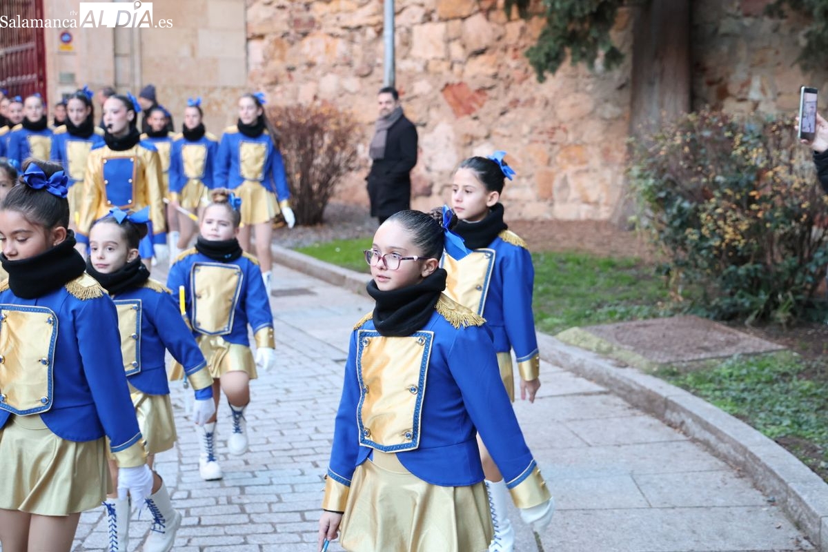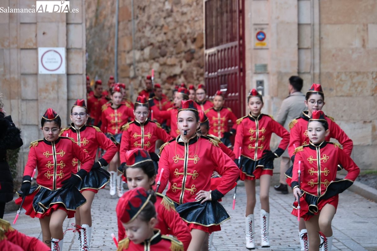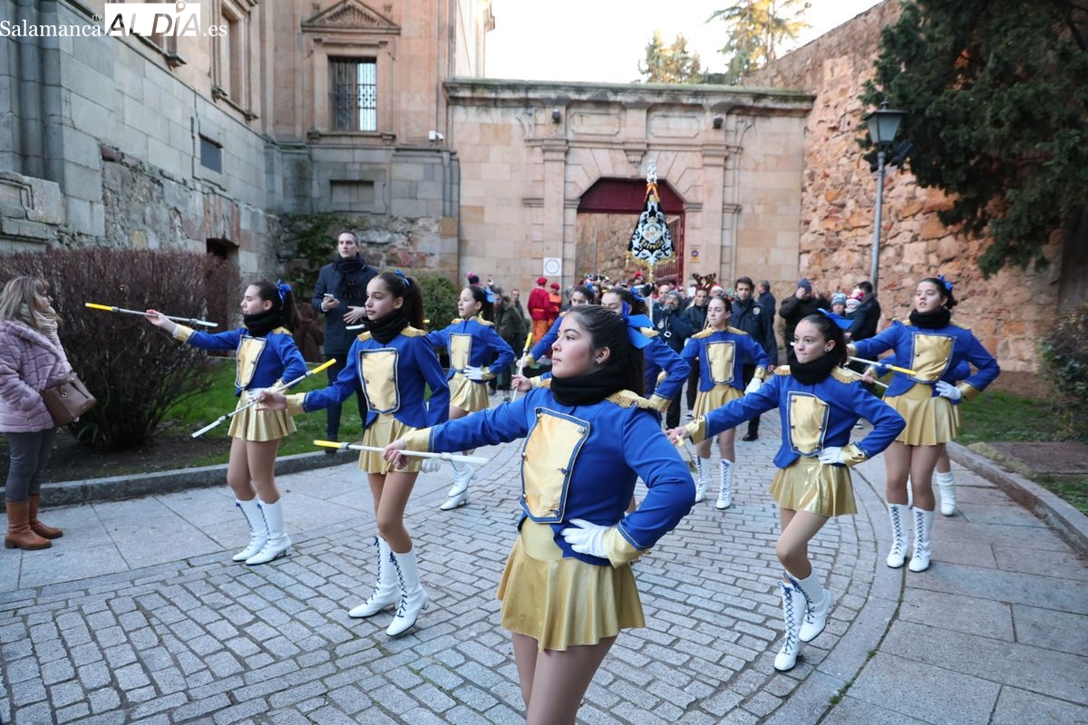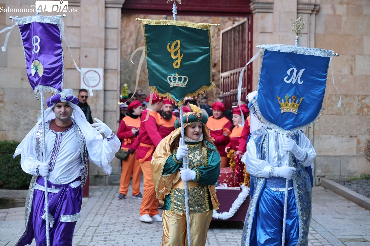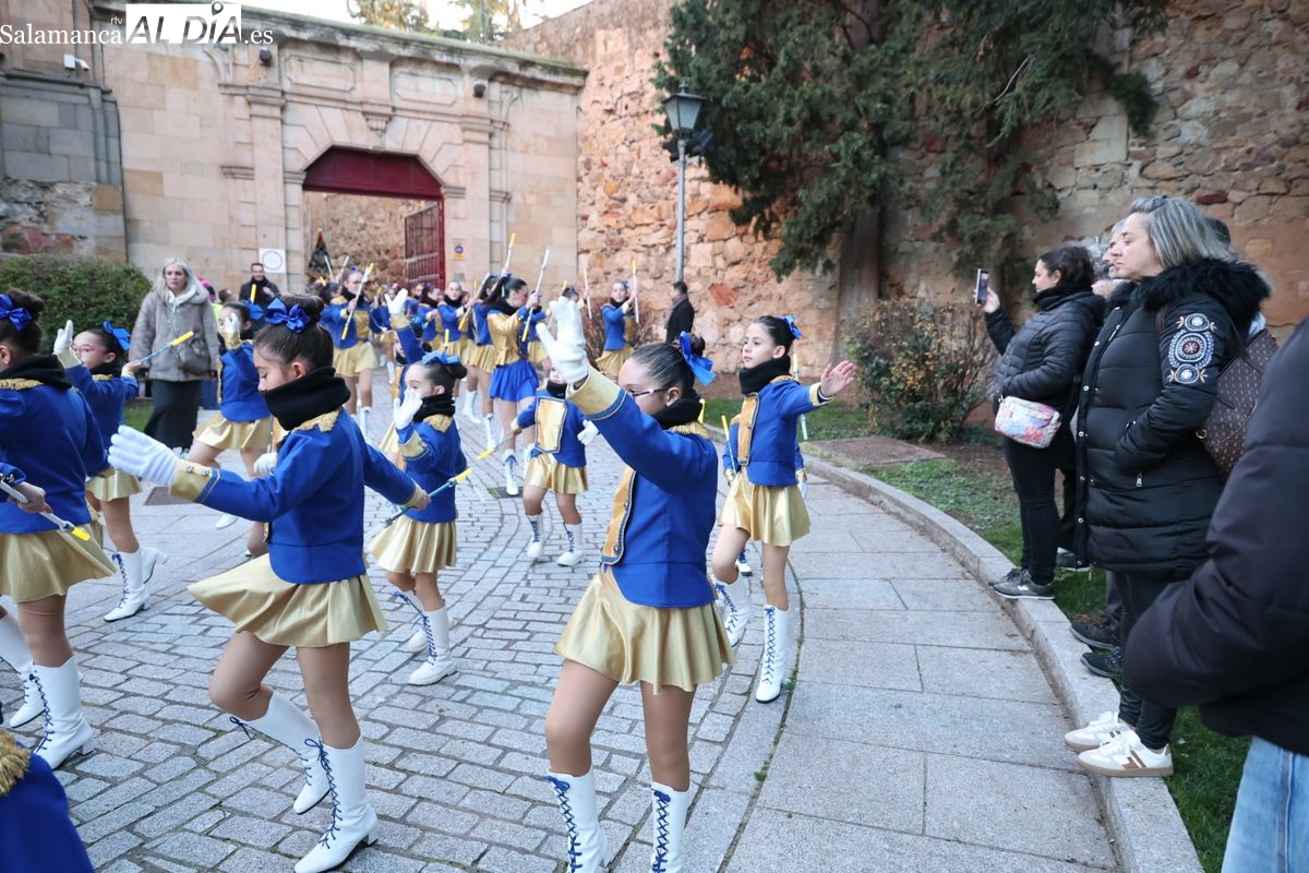 El paso por el ágora salmantina ha dejado imágenes para el recuerdo, con los grupos de animación y las formaciones musicales volcadas con los asistentes. El desfile ha culminado con la emotiva recepción a Sus Majestades los Reyes Magos, quienes han recogido las cartas de los más pequeños al final del recorrido.