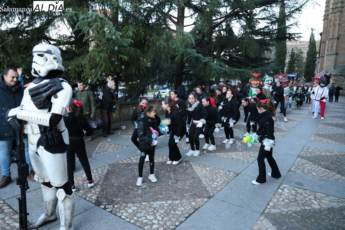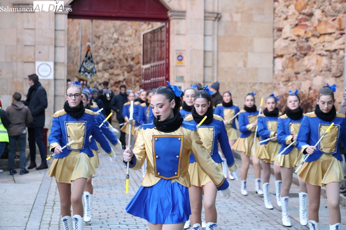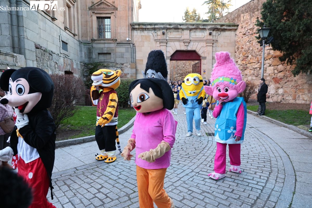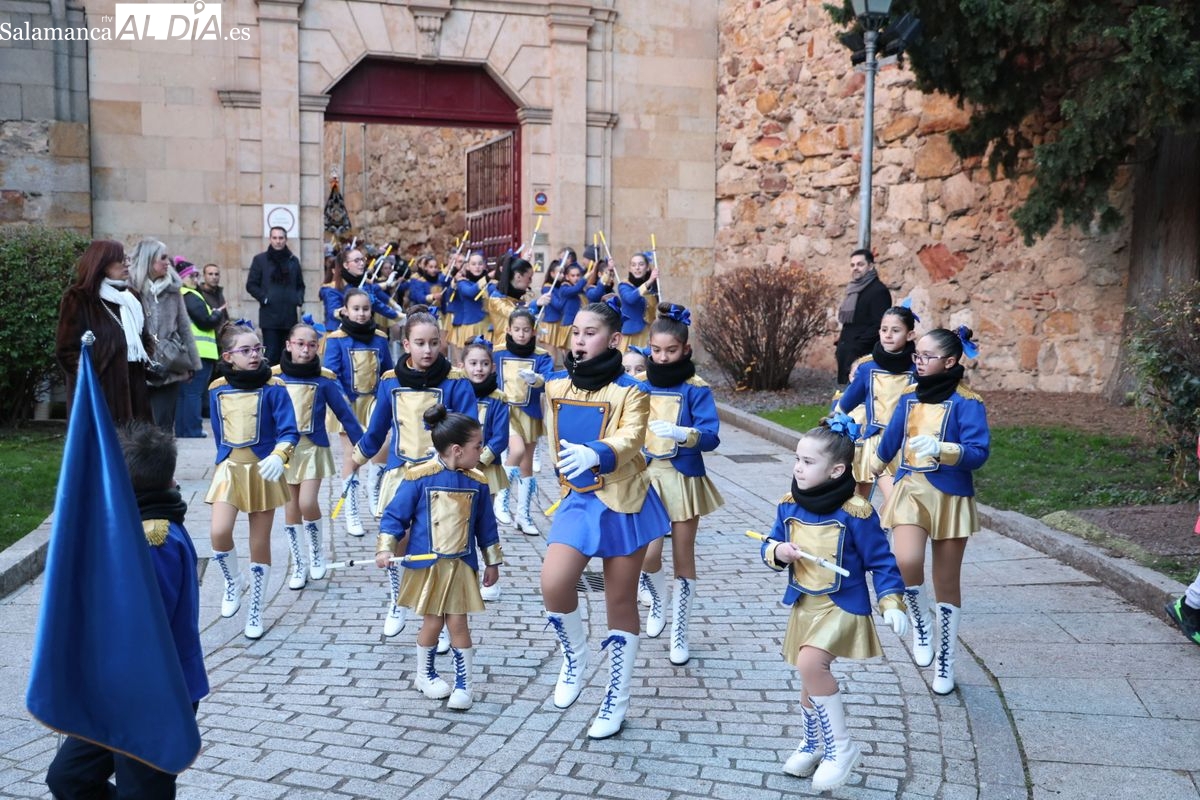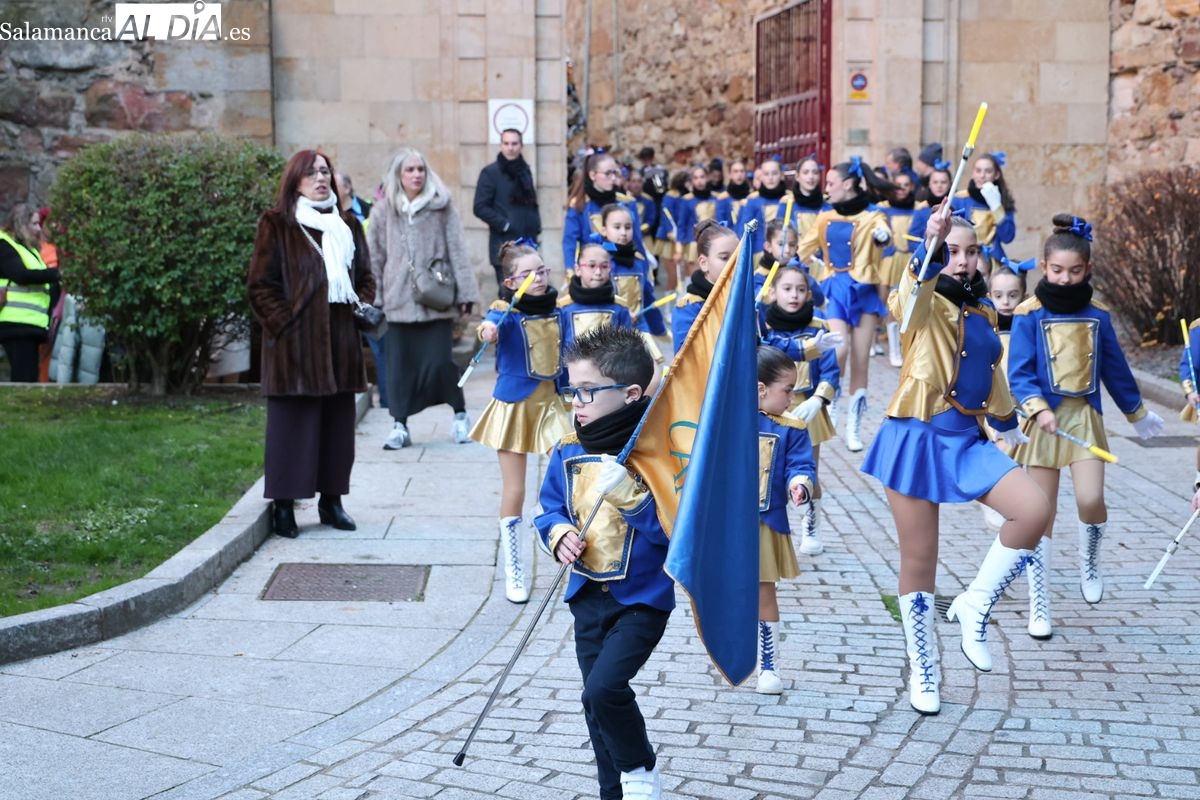 El paso por el ágora salmantina ha dejado imágenes para el recuerdo, con los grupos de animación y las formaciones musicales volcadas con los asistentes. El desfile ha culminado con la emotiva recepción a Sus Majestades los Reyes Magos, quienes han recogido las cartas de los más pequeños al final del recorrido.