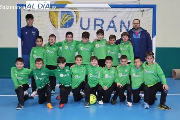 El equipo Benjamín de las Escuelas Deportivas Piensos Durán Albense FS continúa dando pasos firmes en su proceso de formación. A las órdenes de los monitores Gonzalo Martín y Adrián González, el grupo trabaja cada semana con un objetivo claro: que los niños aprendan las bases del fútbol sala mientras disfrutan del deporte y fortalecen sus lazos como equipo.