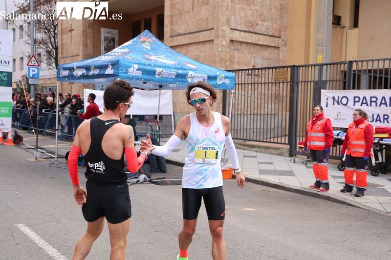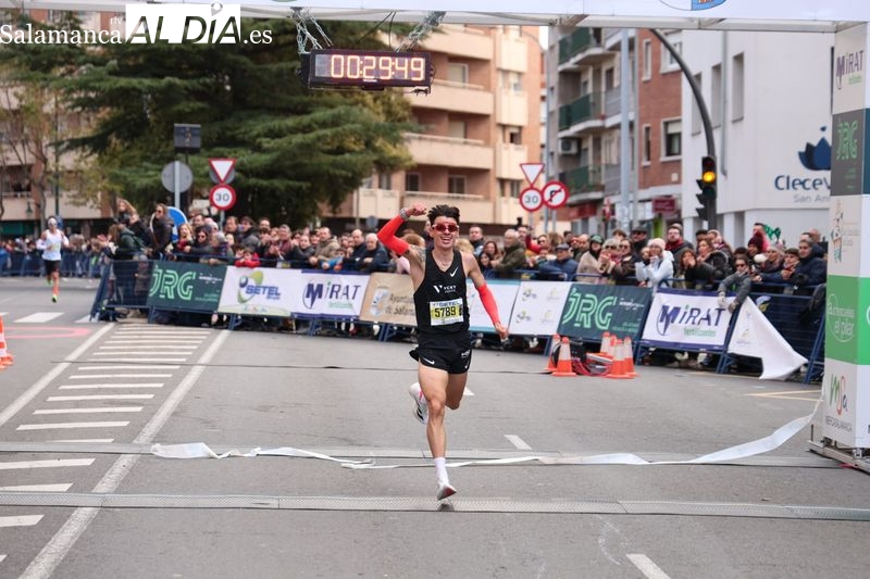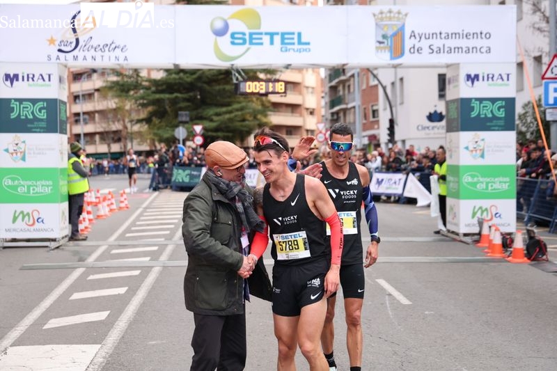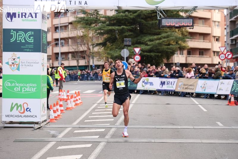 Pablo Sánchez y Gema Martín se han coronado como ganadores de la San Silvestre Salmantina 2025 tras cruzar la línea de meta del paseo de San Antonio en primer lugar. Sus marchas han sido de 29:48 y 36:17, respectivamente.