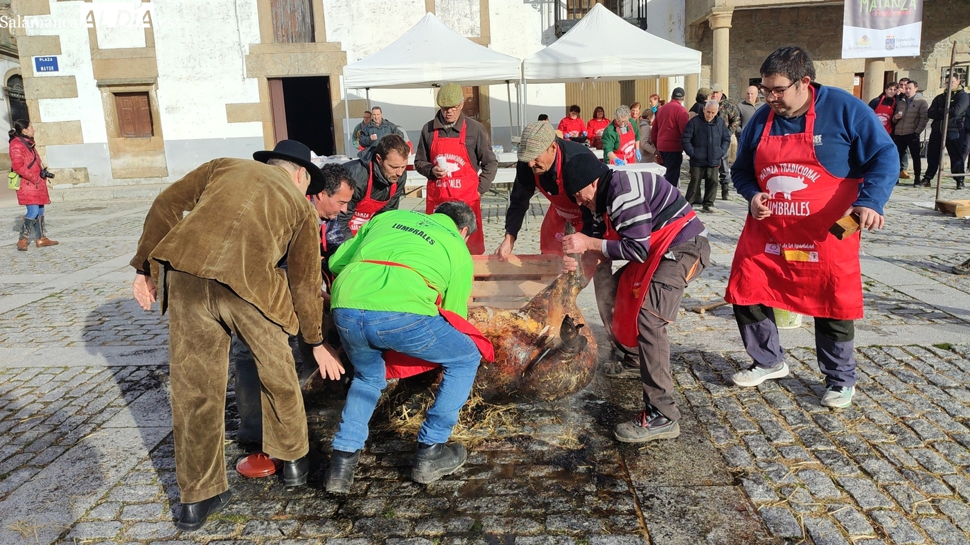 La Plaza Mayor de Lumbrales ha amanecido este domingo envuelta en el aroma de la tradición y la historia. La localidad ha celebrado una nueva edición de su Fiesta de la Matanza Tradicional, un evento organizado por el Ayuntamiento e integrado dentro del calendario de matanzas de la Diputación de Salamanca. La jornada, que busca mantener vivo su legado cultural, ha congregado a numerosos vecinos y visitantes, especialmente durante la comida.