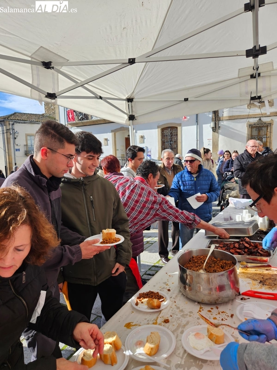 El ambiente festivo ha estado garantizado gracias a los sones de la gaita y el tamboril de Andrés García del Arco, tamborilero llegado desde Bañobárez, y la animación de un maestro de ceremonias aportado por la Diputación de Salamanca, que ha ido explicando los pasos del ritual matancero al público asistente. Hay que destacar que este ha sido el año que más público se ha congregado durante la comida, por ello, la concejala Laura García, en nombre del equipo de Gobierno, ha querido “agradecer el trabajo realizado por todos los colaboradores, así como a todos los que nos han acompañado. Les esperamos en las próximas matanzas y feliz año para todos”, ha concluido.