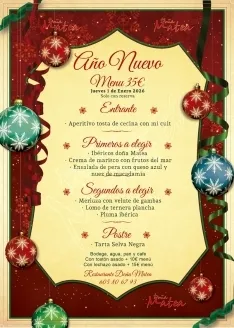 La oferta para dar la bienvenida al nuevo año tiene un precio de 35 euros por persona e incluye bodega, agua, pan y café. La estructura del menú se compone de un entrante, un primer plato a elegir, un segundo a elegir y un postre, buscando satisfacer diferentes gustos.