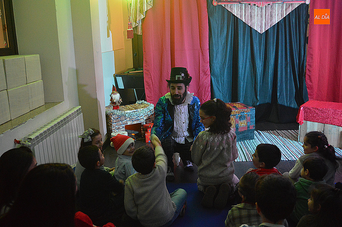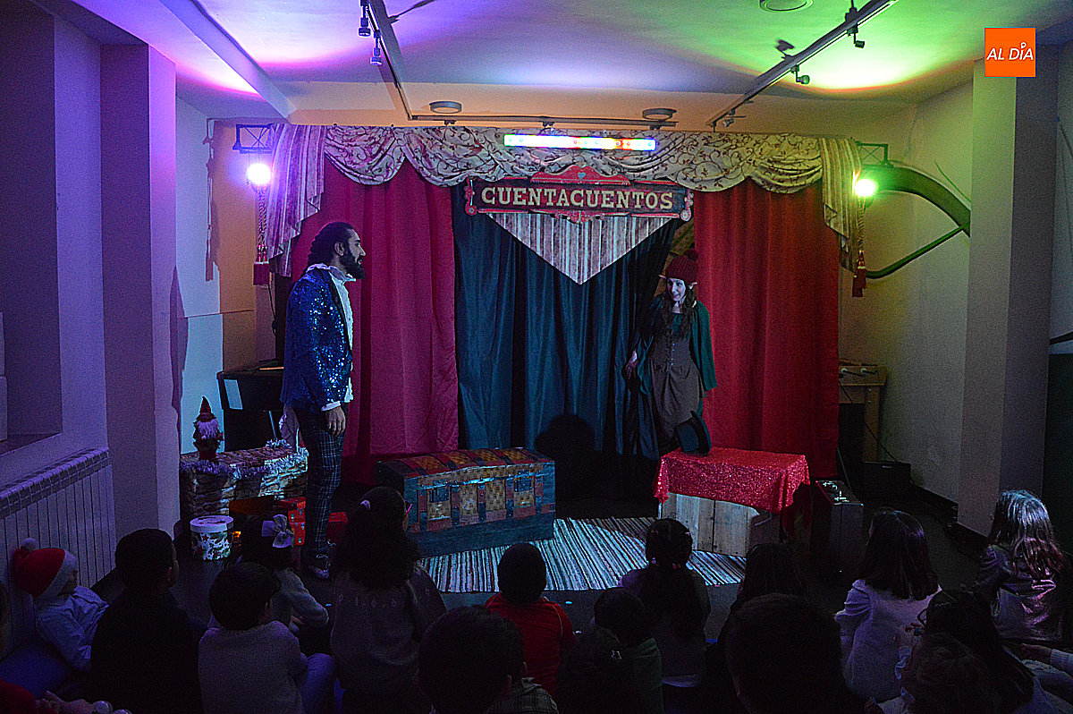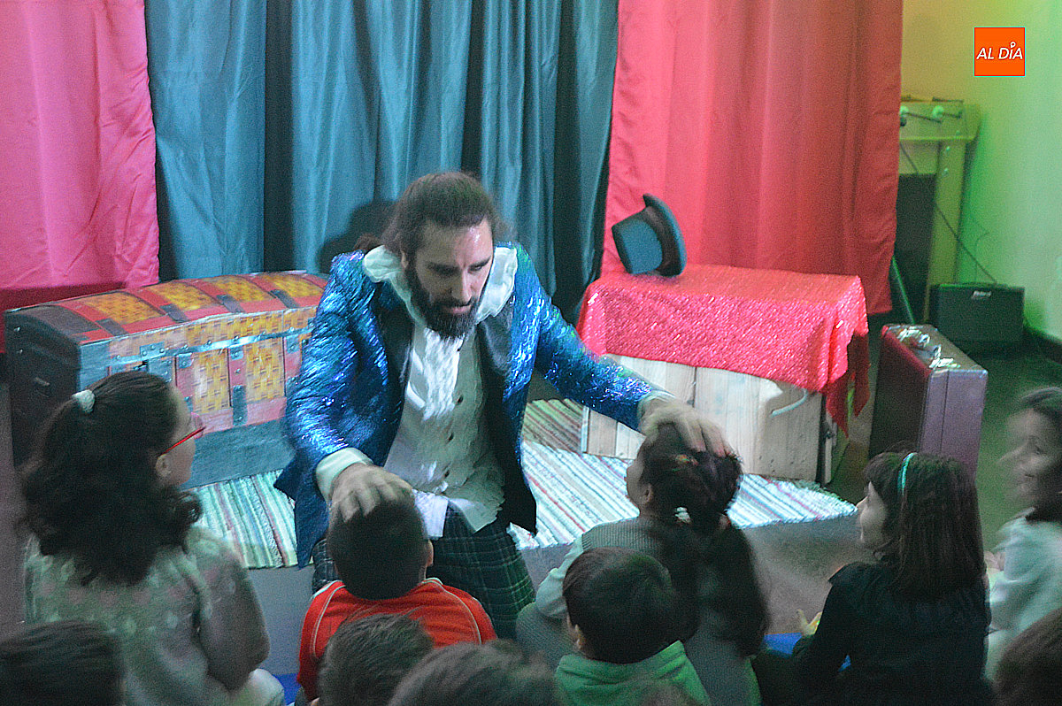 El espectáculo comenzó con un cuento sobre la avaricia de un niño que, a lo largo de la historia, descubre que lo más importante son los amigos. El público intervino en varias ocasiones, participando activamente en la narración, lo que hizo que la lección de amistad y generosidad calara aún más entre los niños.