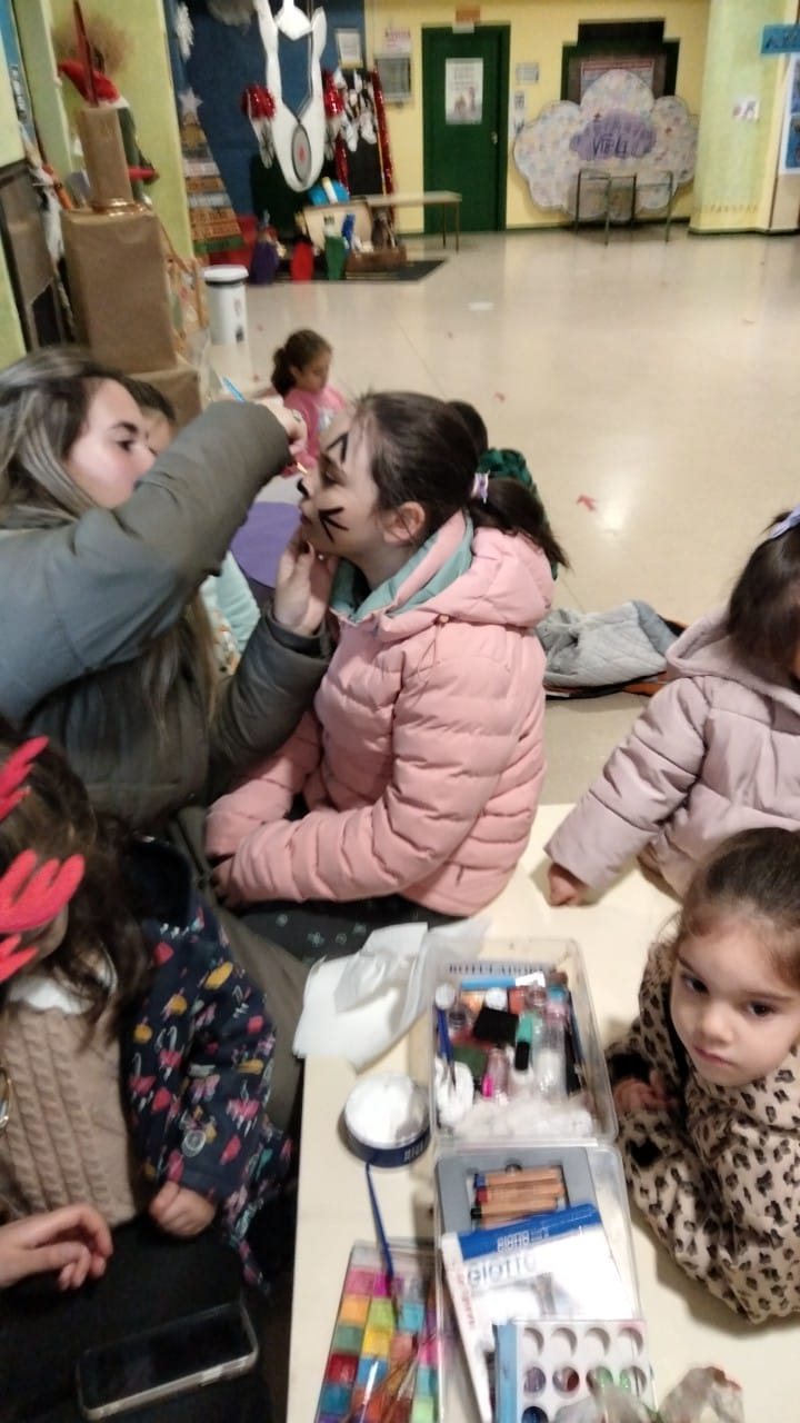 Para poner el broche final a la jornada, y antes de que los niños regresaran a sus hogares para la celebración familiar de Nochevieja, se llevó a cabo una sesión de pintacaras. Los participantes abandonaron las instalaciones caracterizados con motivos festivos y luciendo los complementos elaborados durante la mañana, cerrando así un año de actividades del programa Conciliamos con ilusión, creatividad y diversión.