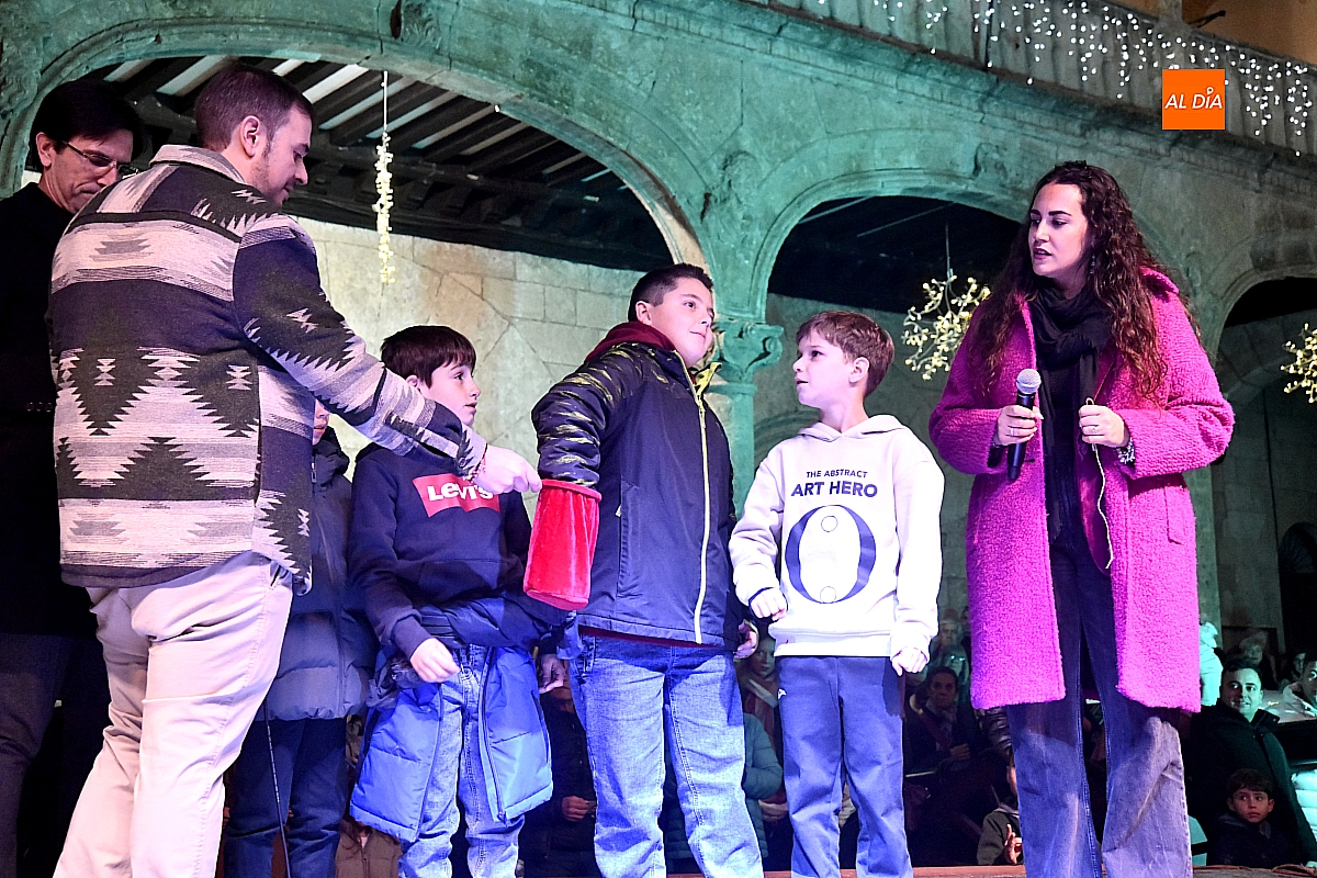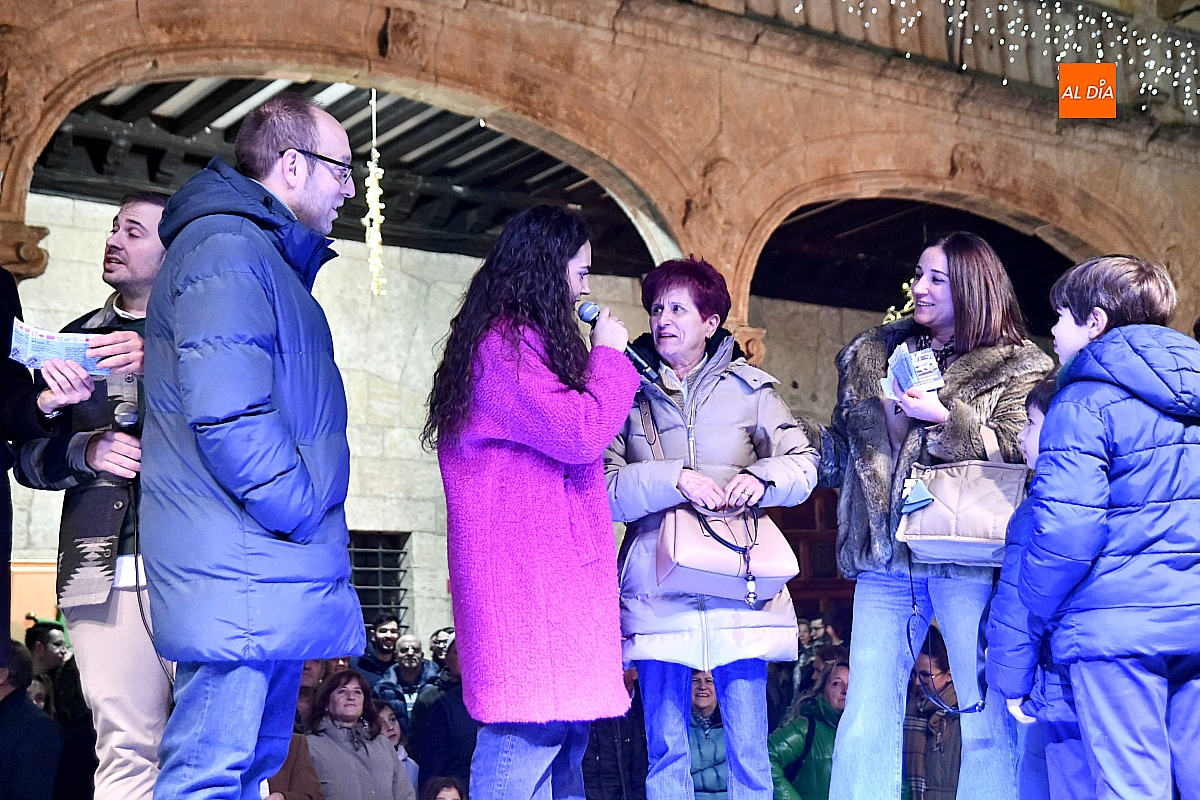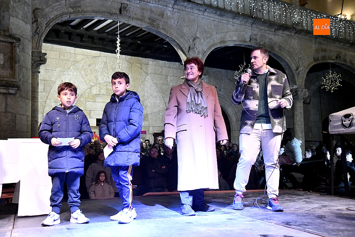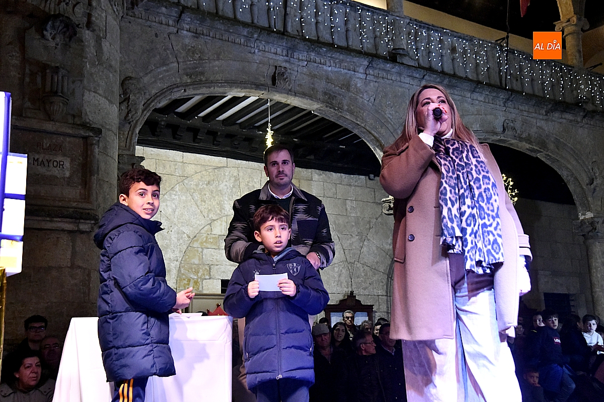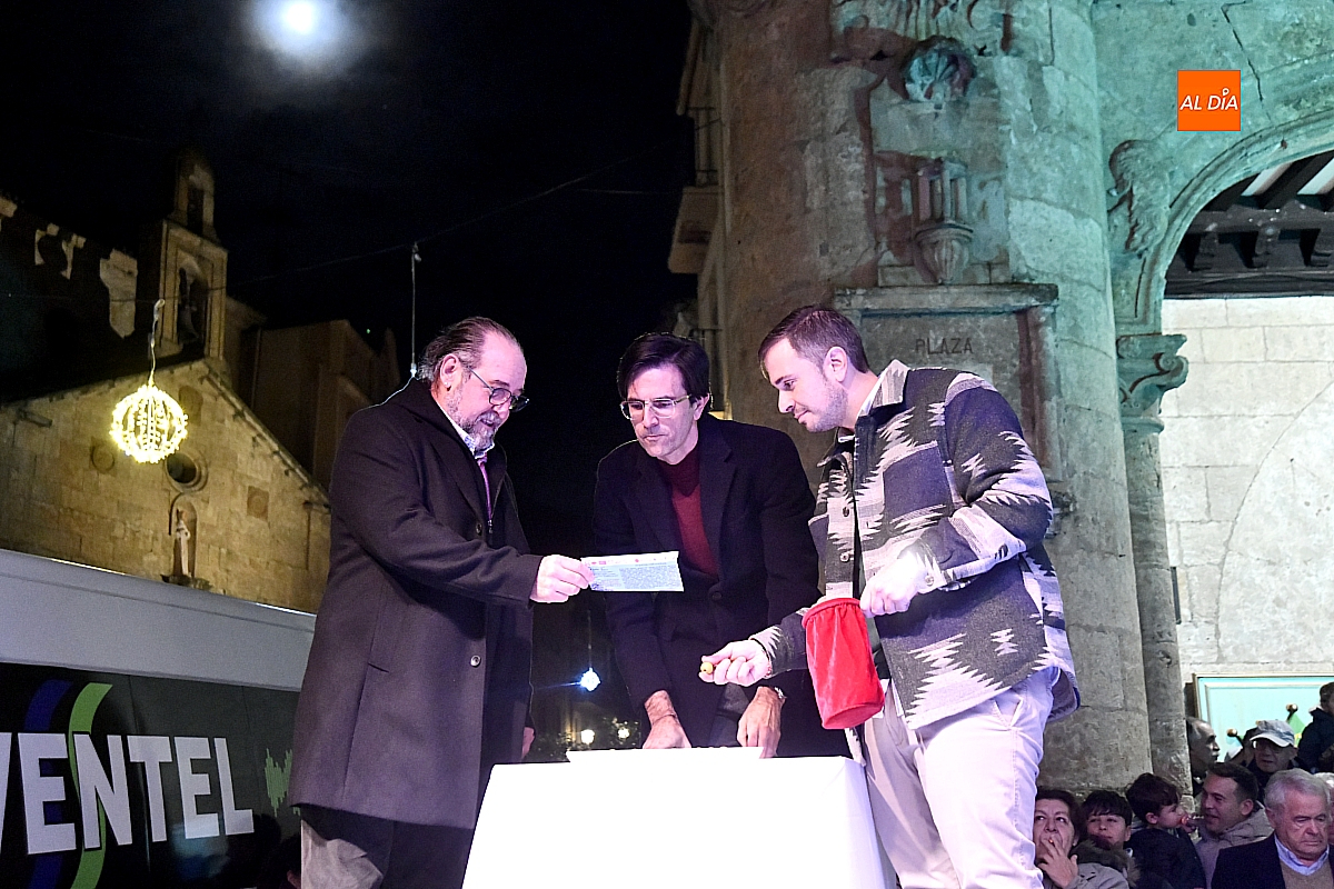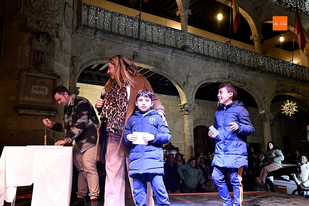 Tras la actuación, se dio paso al esperado sorteo. Los números se encontraban introducidos en una bolsa y fueron varios niños y niñas quienes, actuando como manos inocentes, se encargaron de extraer los números y cantar los números premiados. El sorteo lo ha organizado AFECIR, Asociación de Empresarios de Ciudad Rodrigo, junto con el Ayuntamiento.