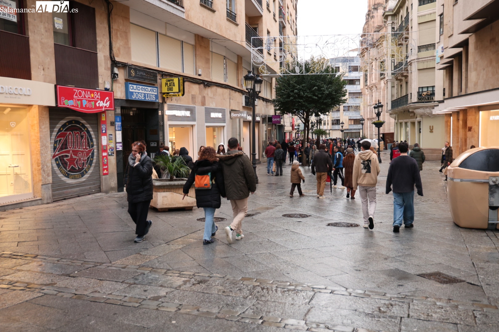 Las principales vías comerciales, como las calles Toro y Zamora, se han llenado de salmantinos apurando sus encargos a los magos, en lo que se perfila como uno de los días de mayor actividad para el sector.