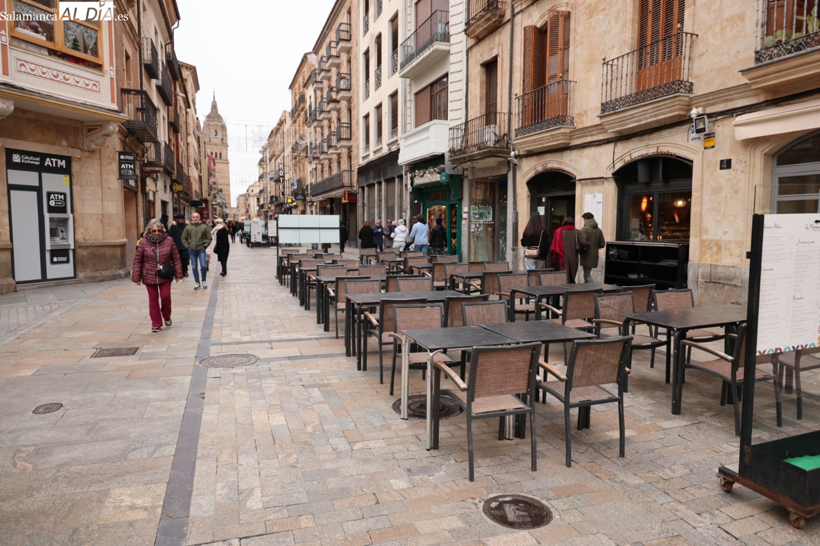 La borrasca Francis ha provocado un notable descenso de las temperaturas en Salamanca este domingo, 4 de enero, resultando en unas calles del centro prácticamente desiertas.