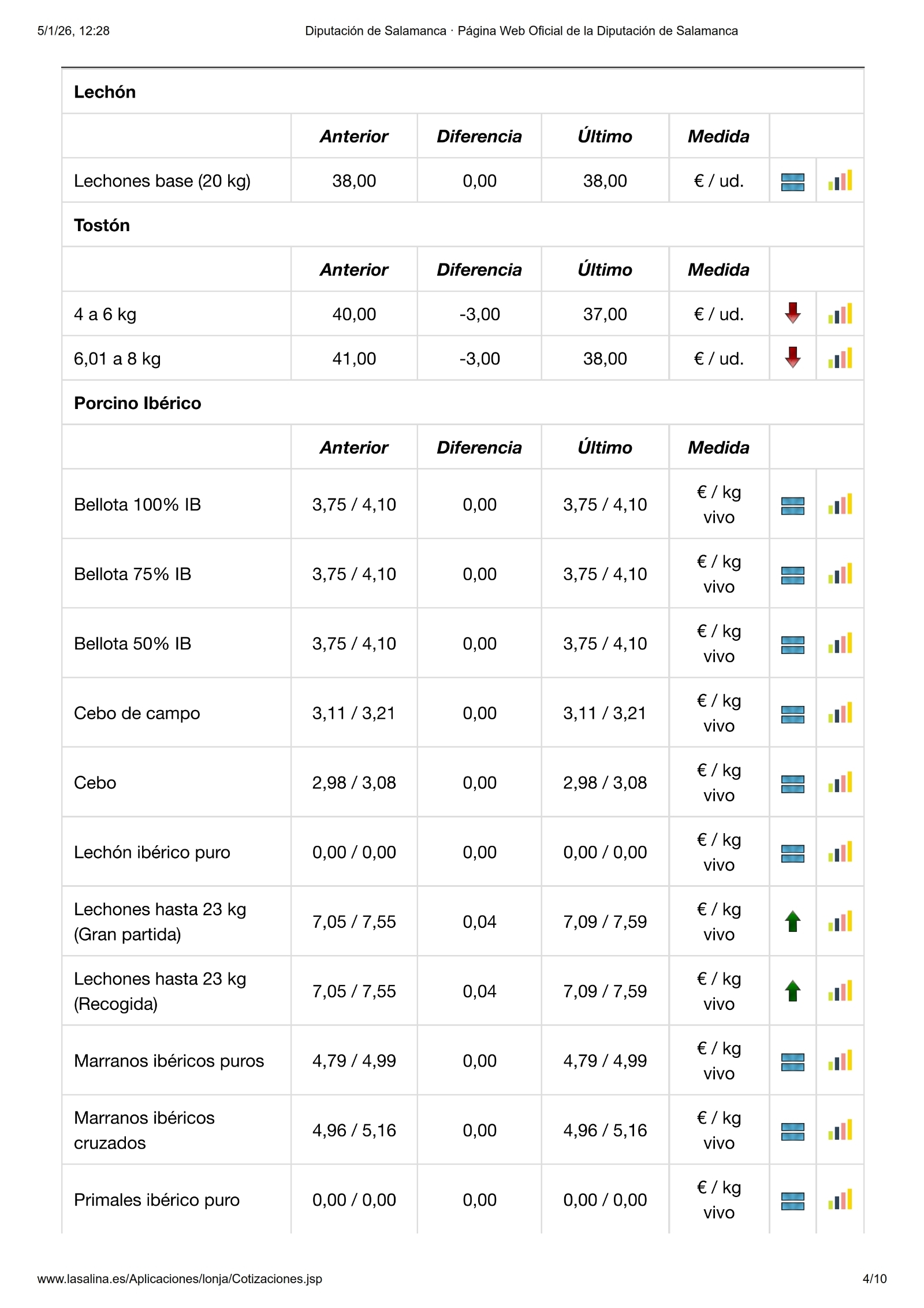 Y como la sucediera la semana pasada, los tostones vuelven a caer, en esta ocasión -3,00 €/ud. para las dos categorías de porcino blanco y de -2,00 €/ud. para los tostones ibéricos más pequeños. Por el contrario, los lechones ibéricos suben 0,04 €/kg.