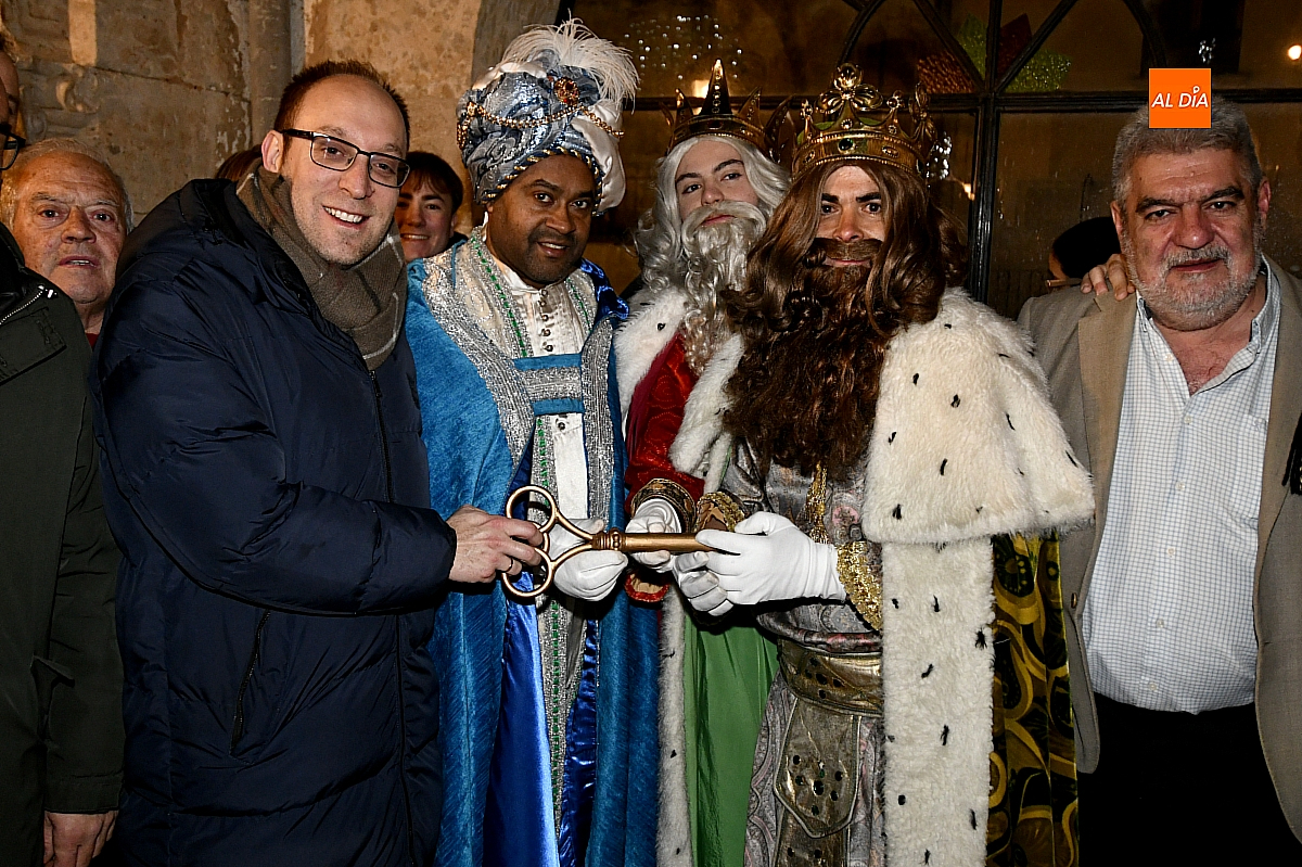 Tras descender de sus carrozas, Melchor, Gaspar y Baltasar se dirigieron al Ayuntamiento para protagonizar el acto institucional más simbólico de la jornada. Desde el palco presidencial, el alcalde de Ciudad Rodrigo dirigió unas palabras a los presentes y entregó la llave mágica de la ciudad, un emblema que permitirá a los Reyes Magos abrir todas las puertas de los hogares mirobrigenses durante la madrugada para dejar sus regalos.