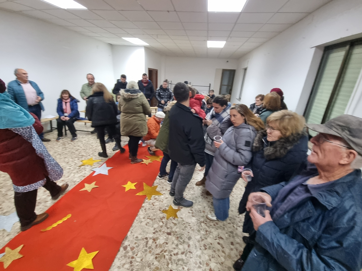 Tras el protagonismo de los niños, la celebración ha dado paso al momento dedicado a los adultos. Para cerrar la visita real y celebrar la festividad, los vecinos presentes han participado en un brindis con champán.