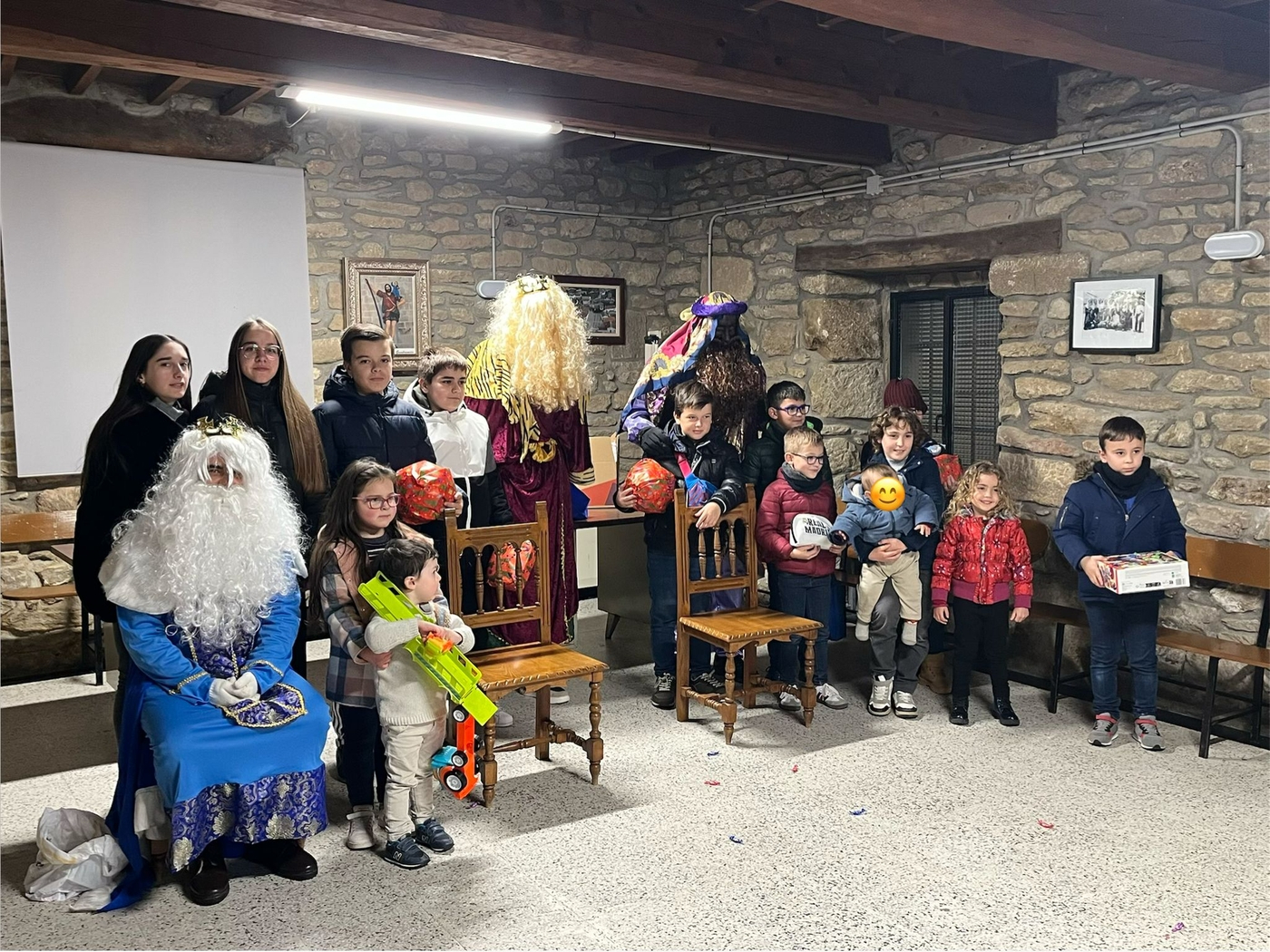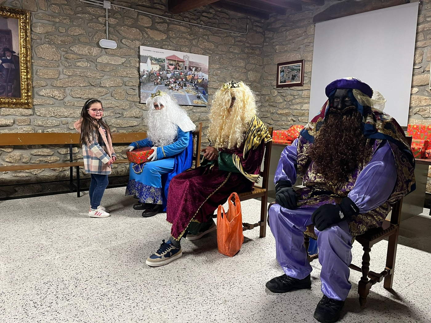 Sus Majestades de Oriente han sido recibidos por medio centenar de vecinos en el bajo del Ayuntamiento. Durante el encuentro, los Reyes Magos repartieron regalos a los asistentes y compartieron un chocolate caliente con bizcochos para finalizar la celebración
