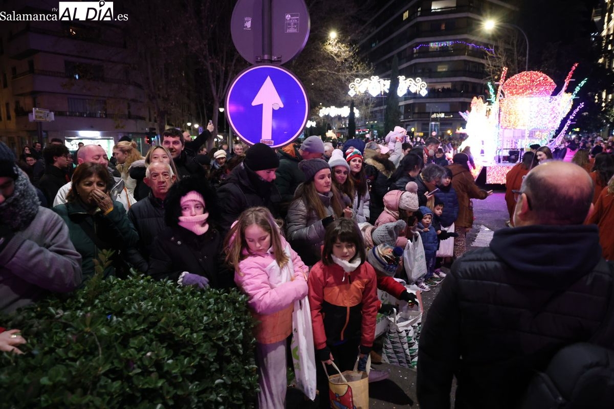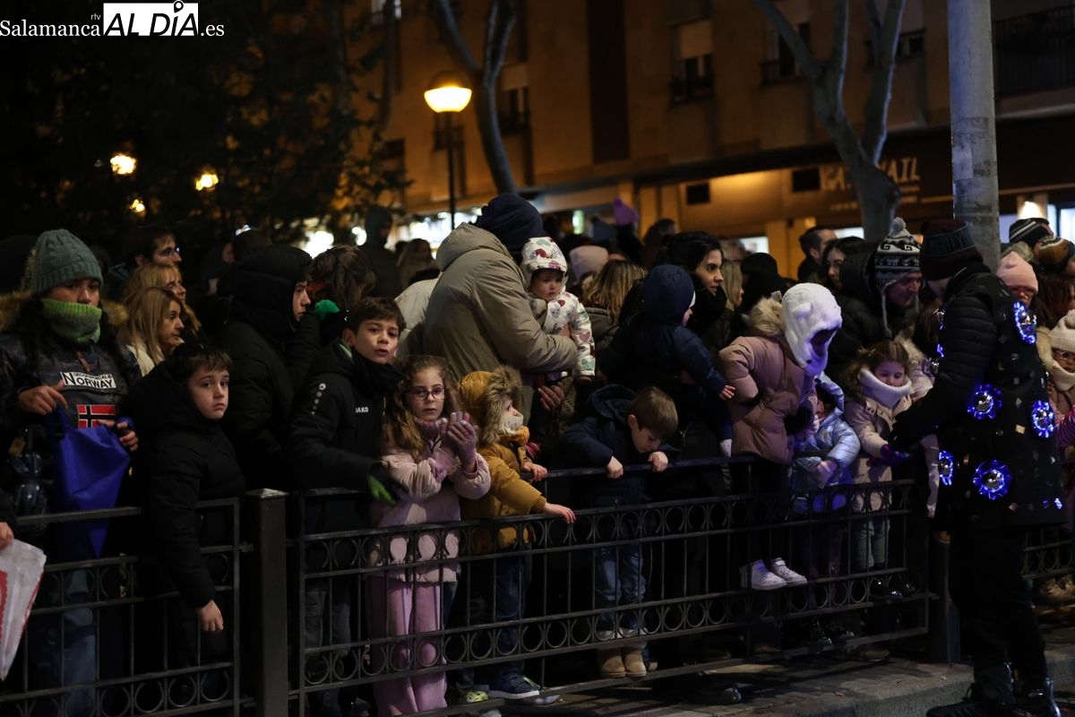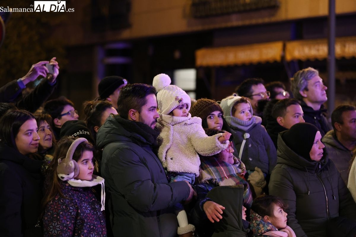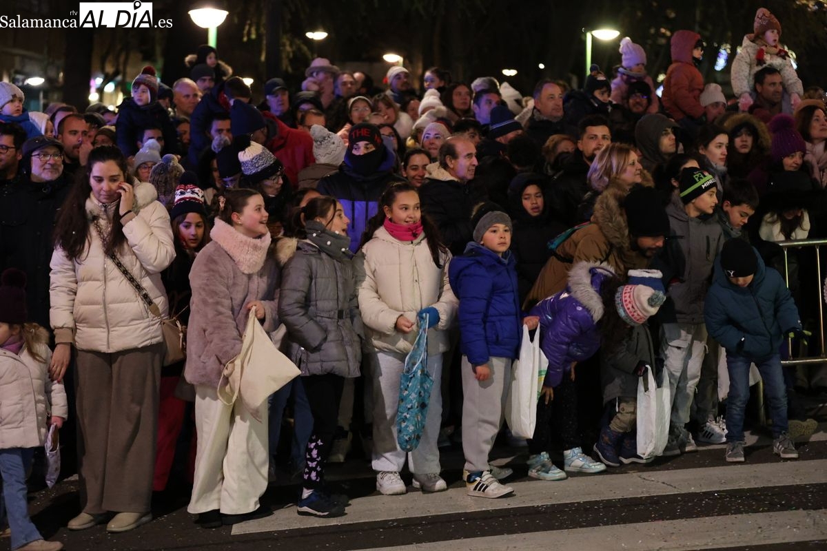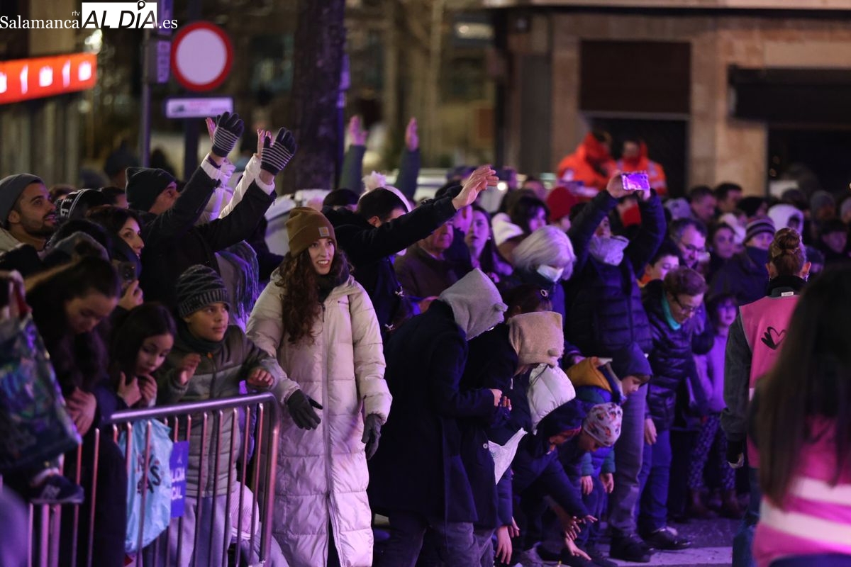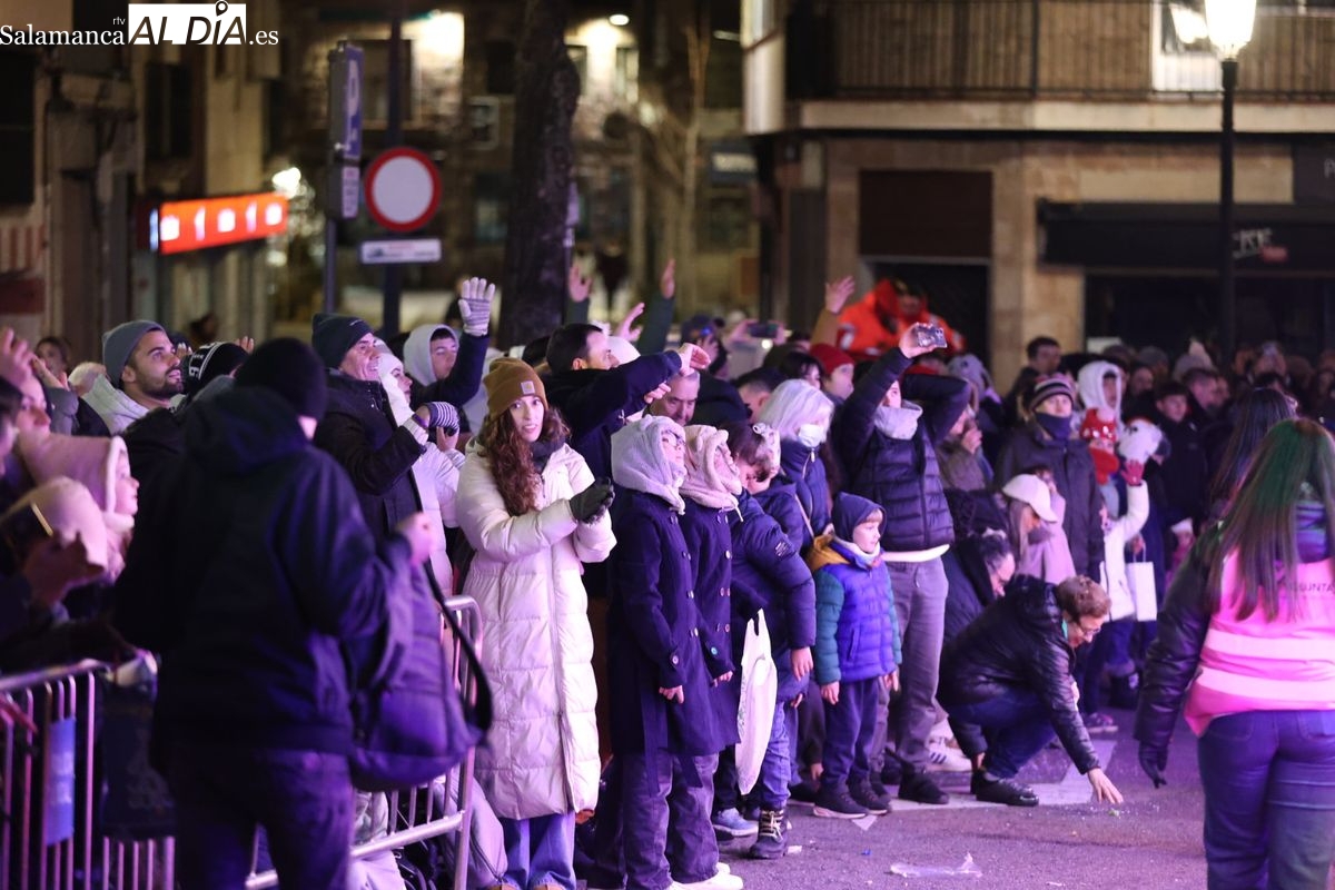 Miles de personas han desafiado a las bajas temperaturas, que han marcado valores bajo cero durante la tarde de este lunes, para recibir a Melchor, Gaspar y Baltasar en Salamanca. La ciudad se ha volcado un año más con la tradicional Cabalgata de Reyes, un evento que ha llenado de color el centro urbano gracias a un despliegue formado por más de 600 personas y 12 carrozas.