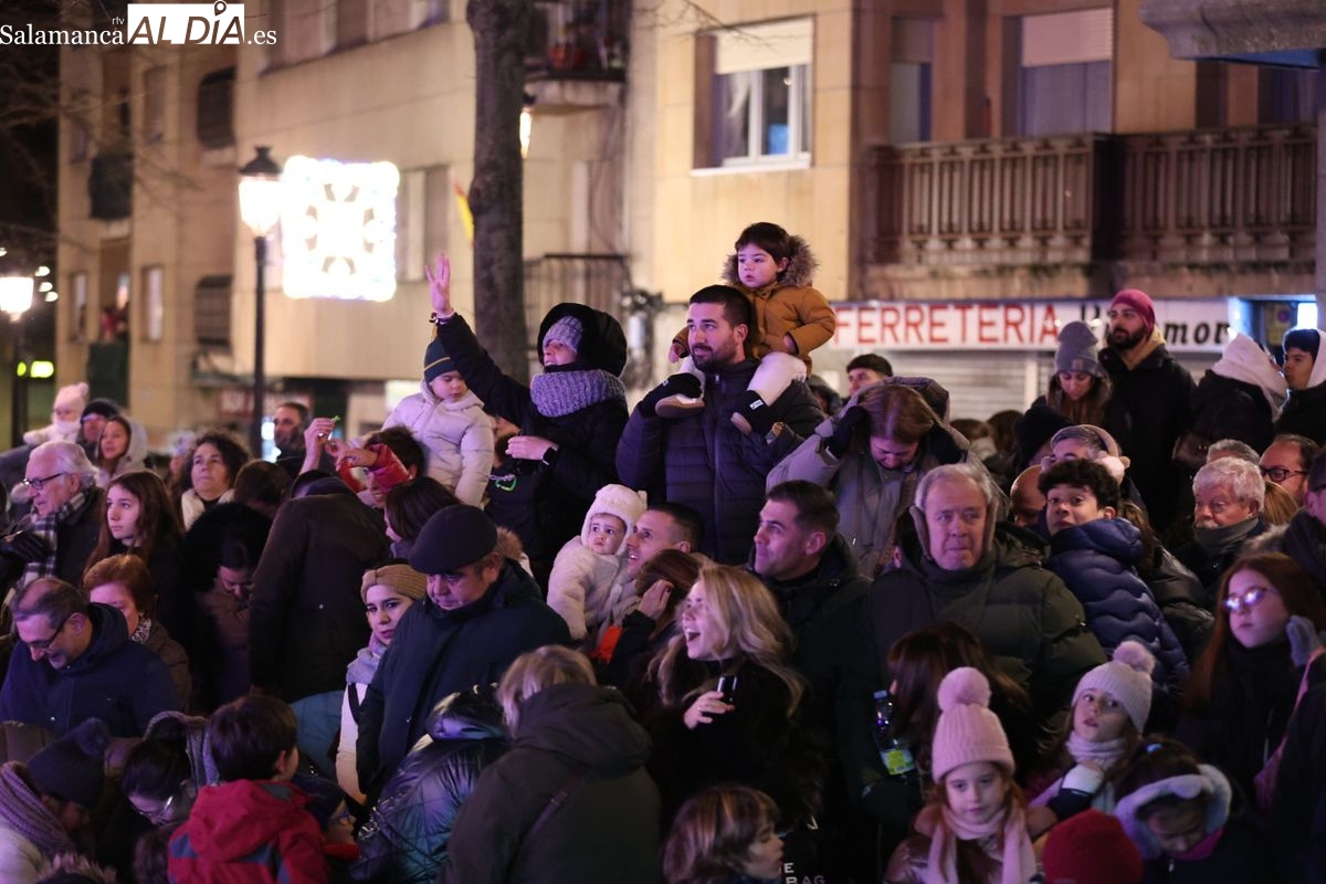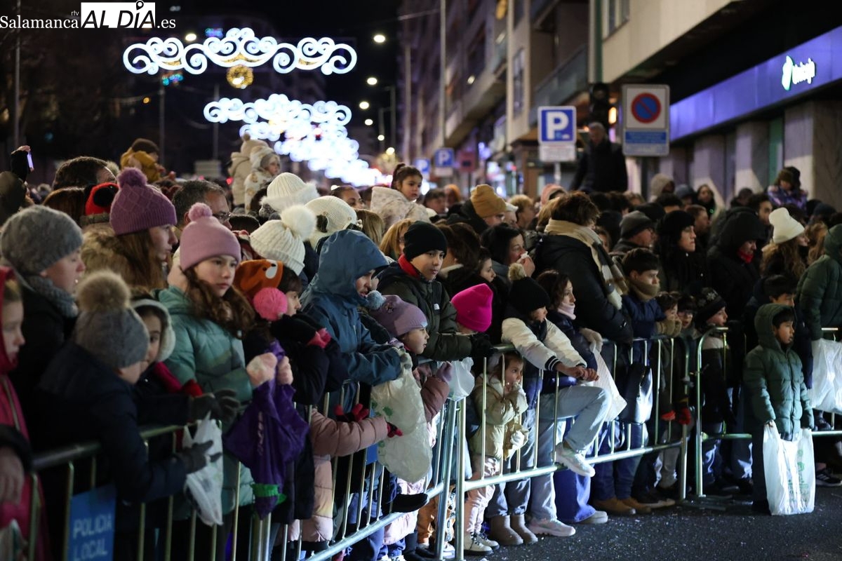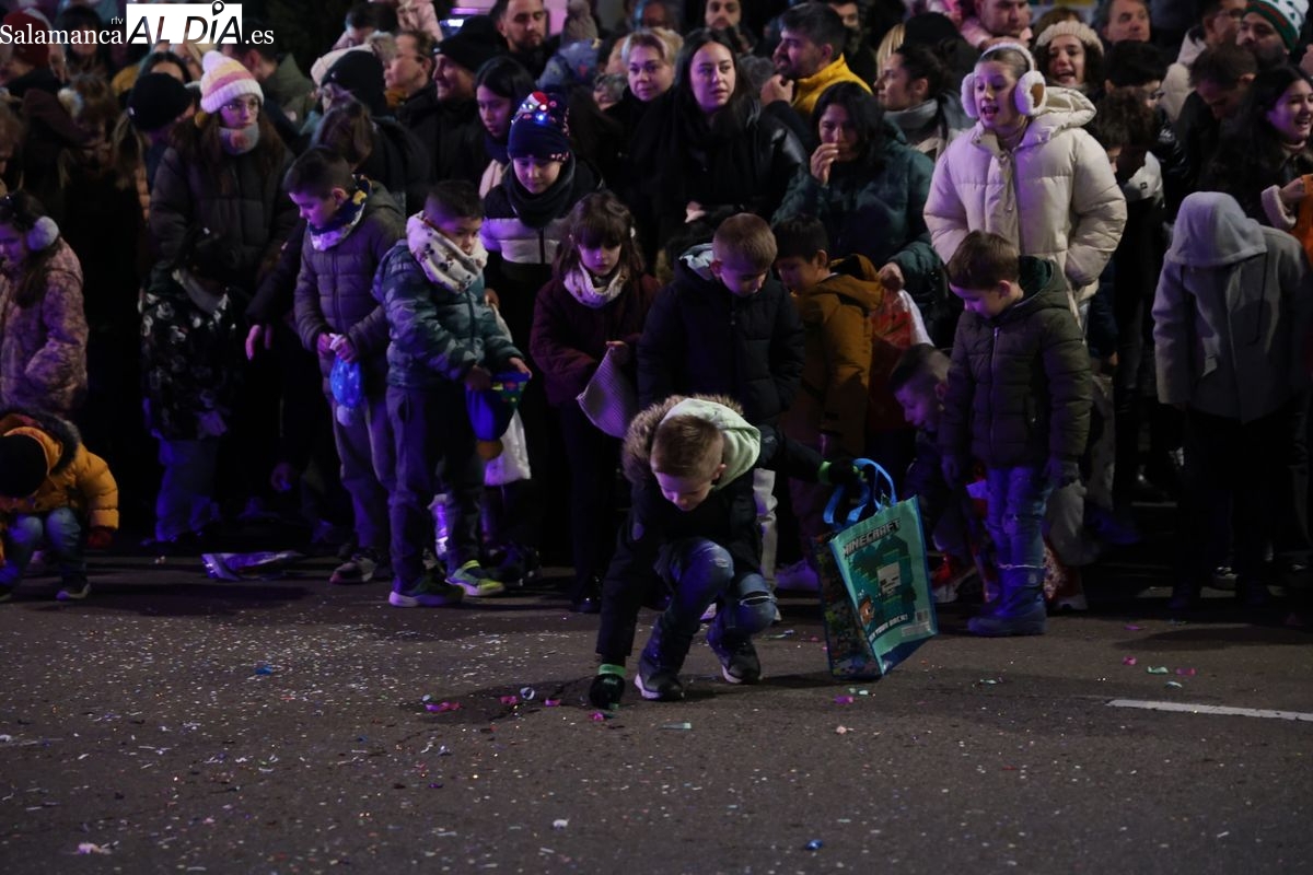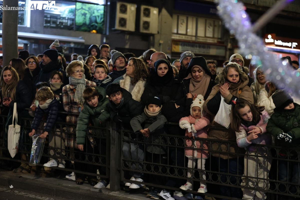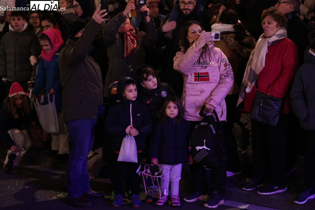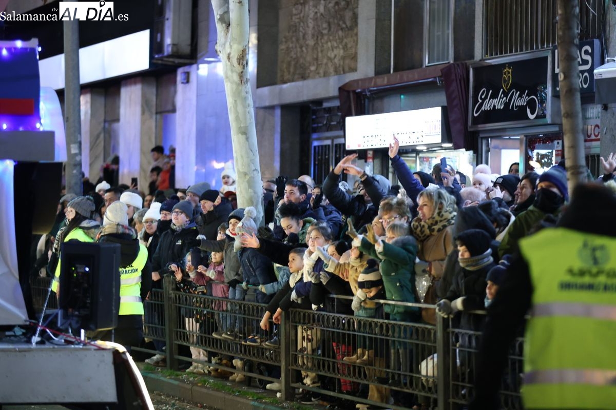 Miles de personas han desafiado a las bajas temperaturas, que han marcado valores bajo cero durante la tarde de este lunes, para recibir a Melchor, Gaspar y Baltasar en Salamanca. La ciudad se ha volcado un año más con la tradicional Cabalgata de Reyes, un evento que ha llenado de color el centro urbano gracias a un despliegue formado por más de 600 personas y 12 carrozas.