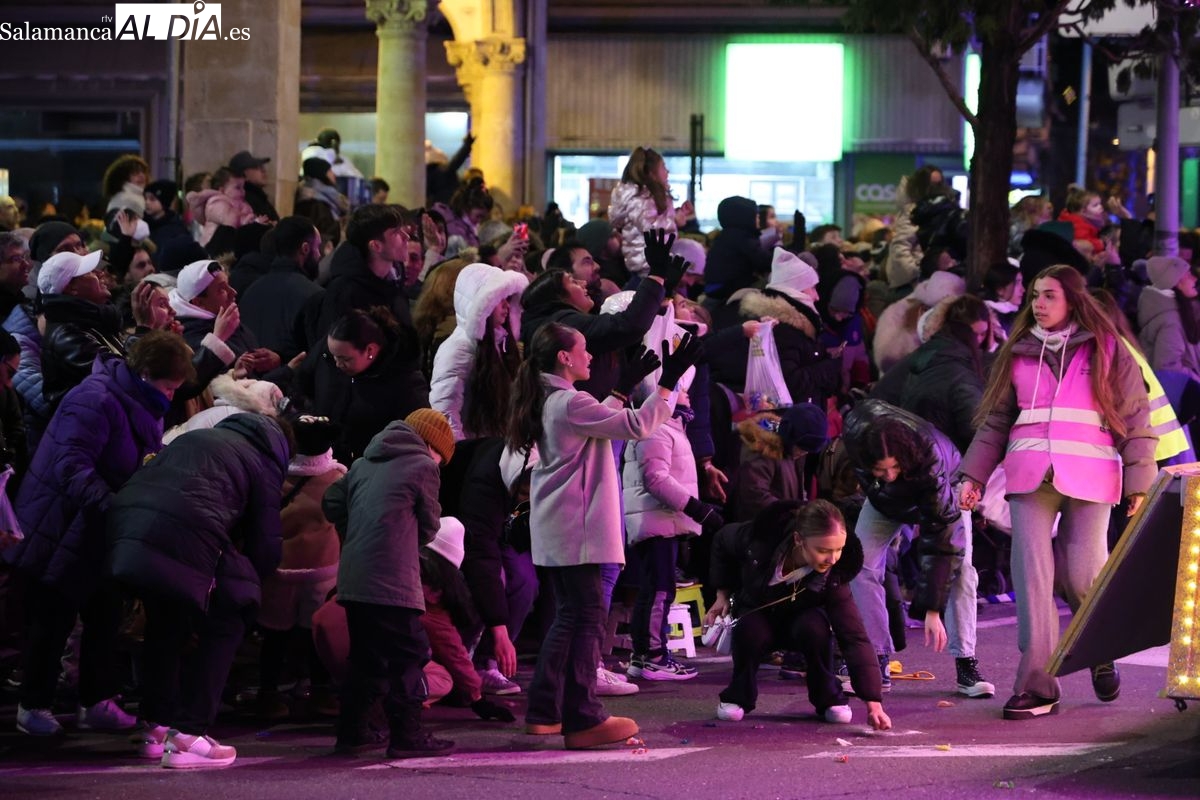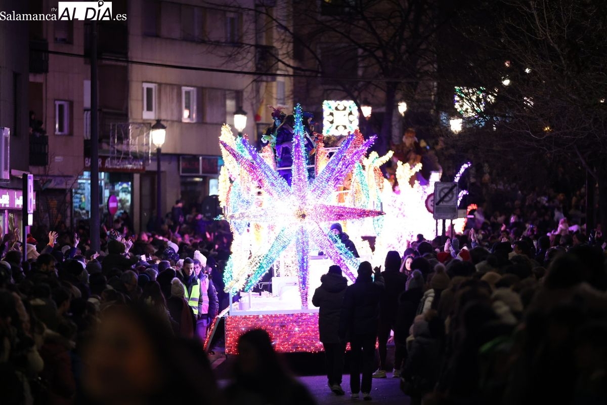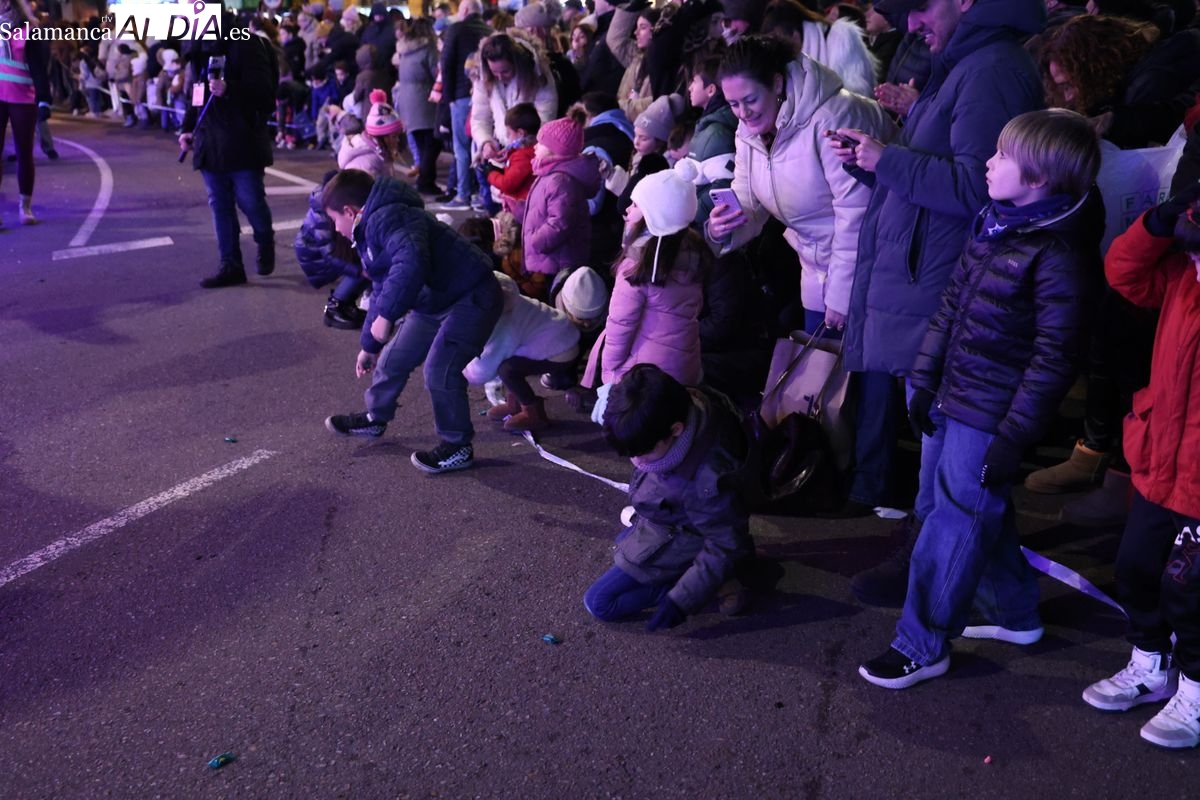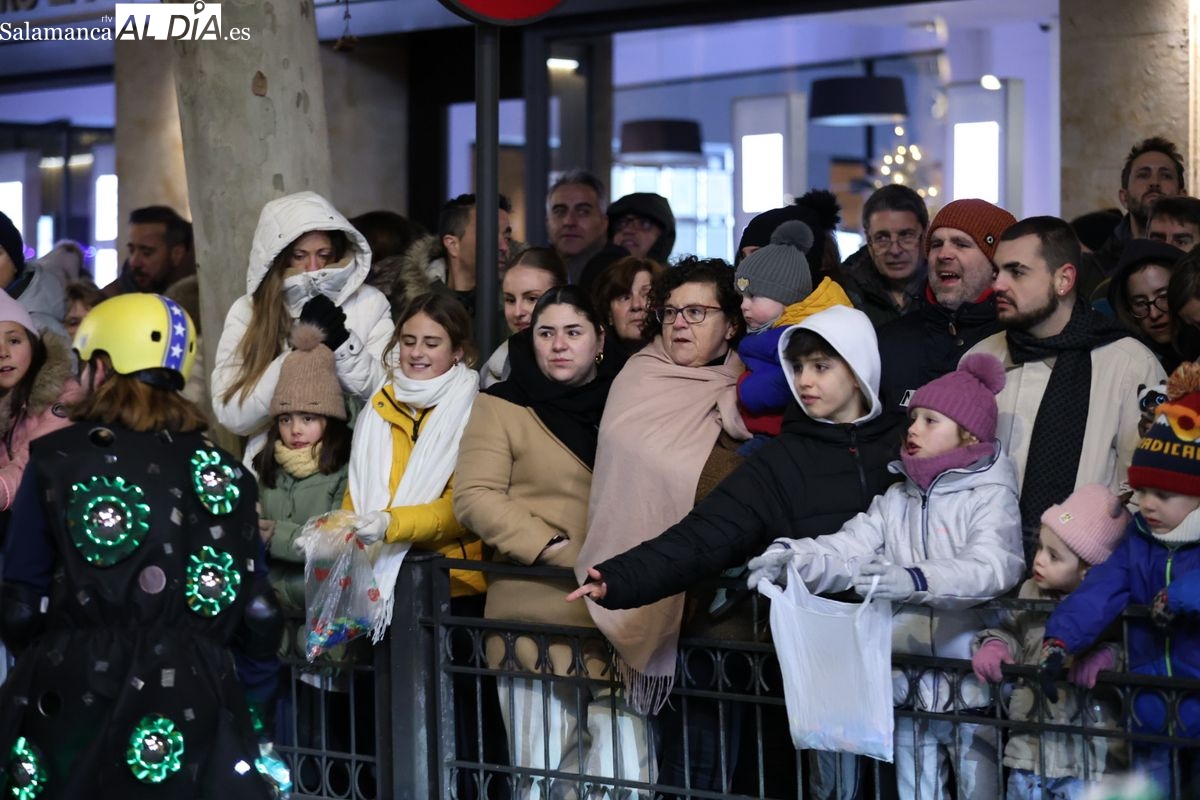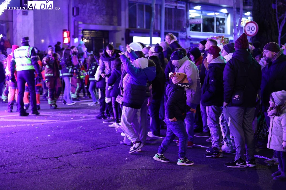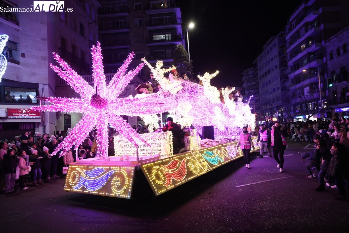 Miles de personas han desafiado a las bajas temperaturas, que han marcado valores bajo cero durante la tarde de este lunes, para recibir a Melchor, Gaspar y Baltasar en Salamanca. La ciudad se ha volcado un año más con la tradicional Cabalgata de Reyes, un evento que ha llenado de color el centro urbano gracias a un despliegue formado por más de 600 personas y 12 carrozas.