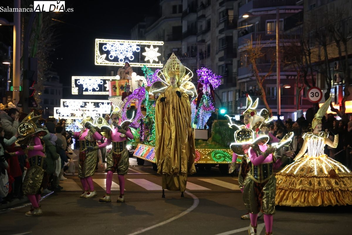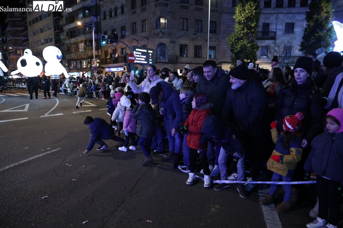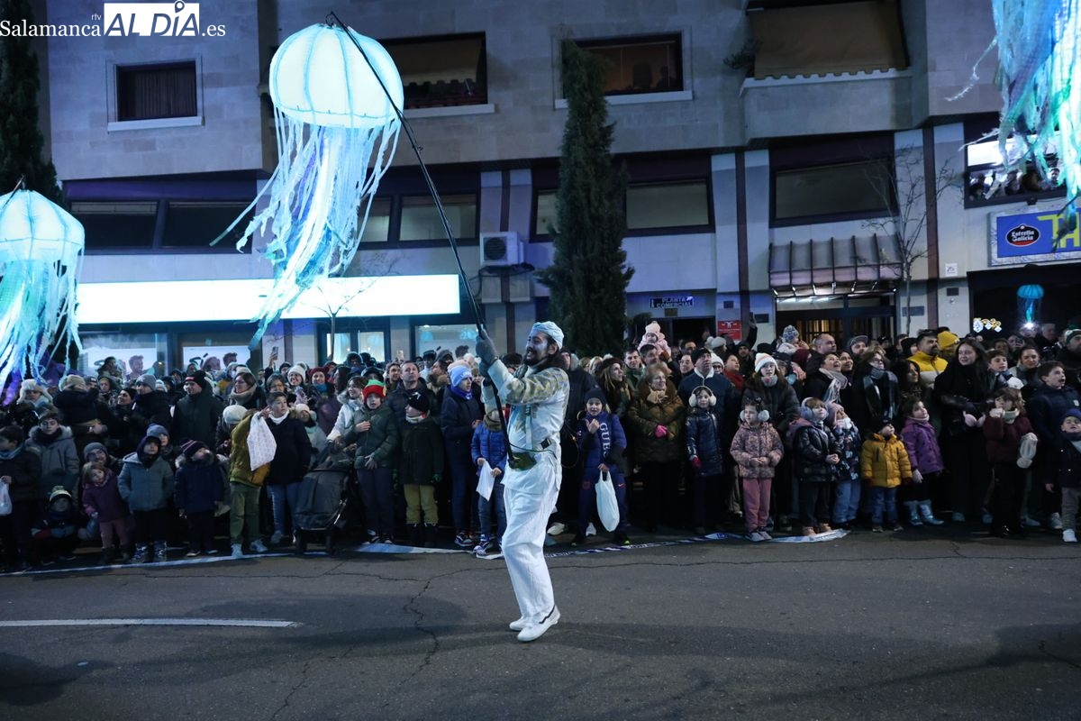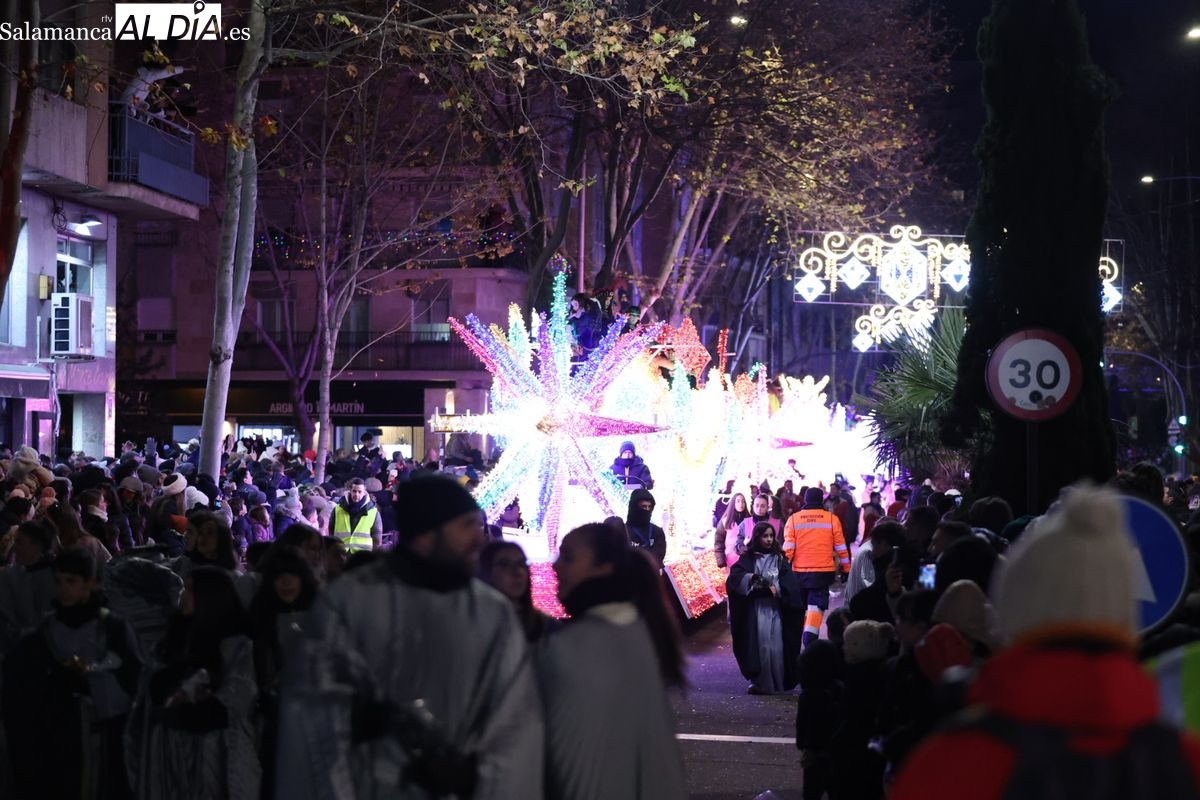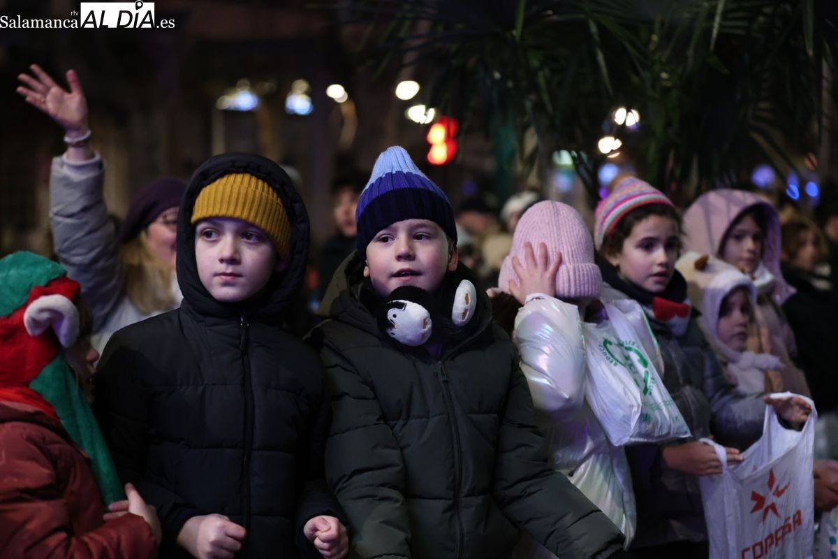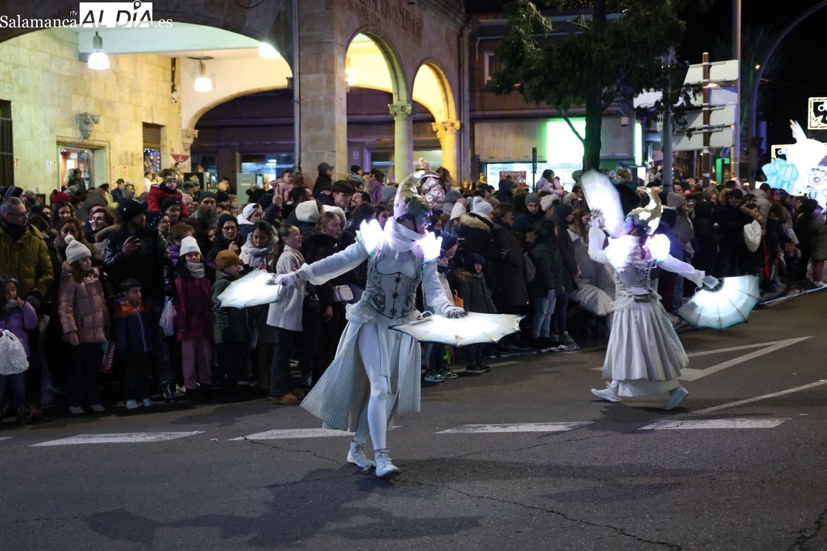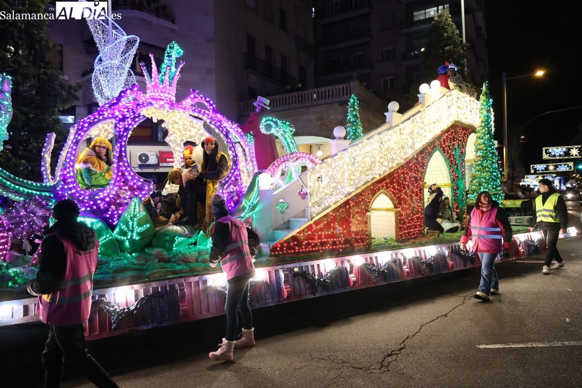 Miles de personas han desafiado a las bajas temperaturas, que han marcado valores bajo cero durante la tarde de este lunes, para recibir a Melchor, Gaspar y Baltasar en Salamanca. La ciudad se ha volcado un año más con la tradicional Cabalgata de Reyes, un evento que ha llenado de color el centro urbano gracias a un despliegue formado por más de 600 personas y 12 carrozas.